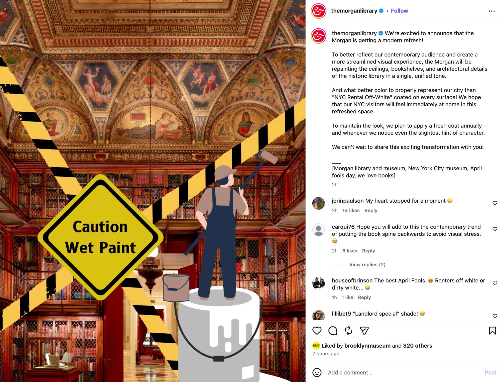 The Morgan Library and Museum came in swinging with a joke about giving its iconic ceiling and interior details the good ol' Landlord Special.