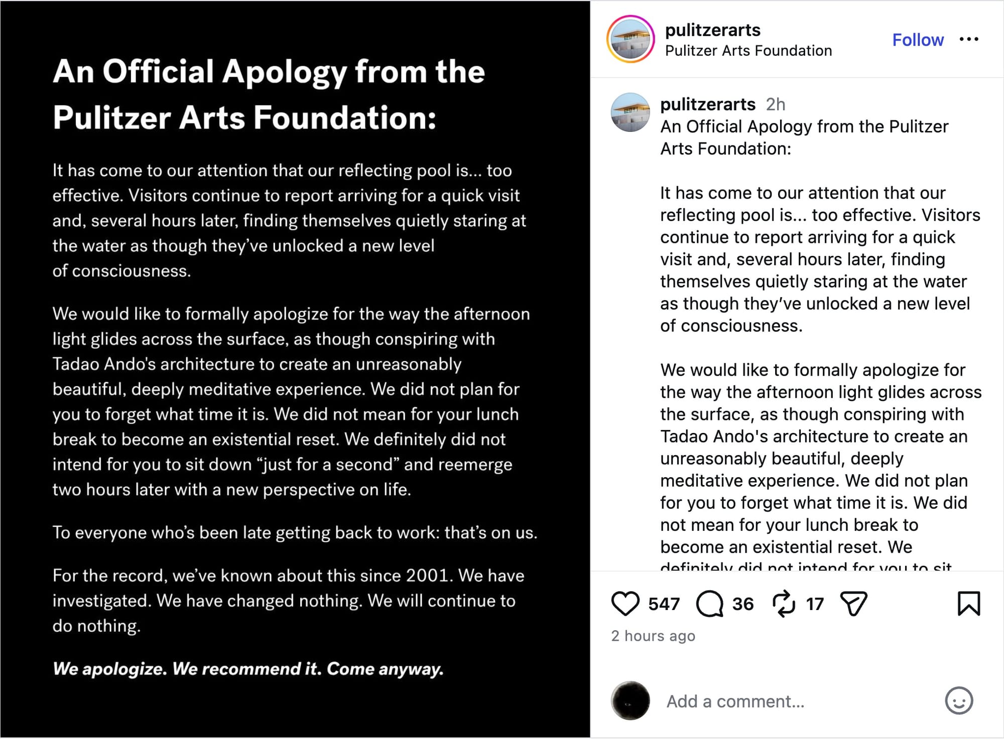 On the other hand, the Pulitzer Arts Foundation stands by its mind-altering architectural features — maladaptive daydreamers beware.
