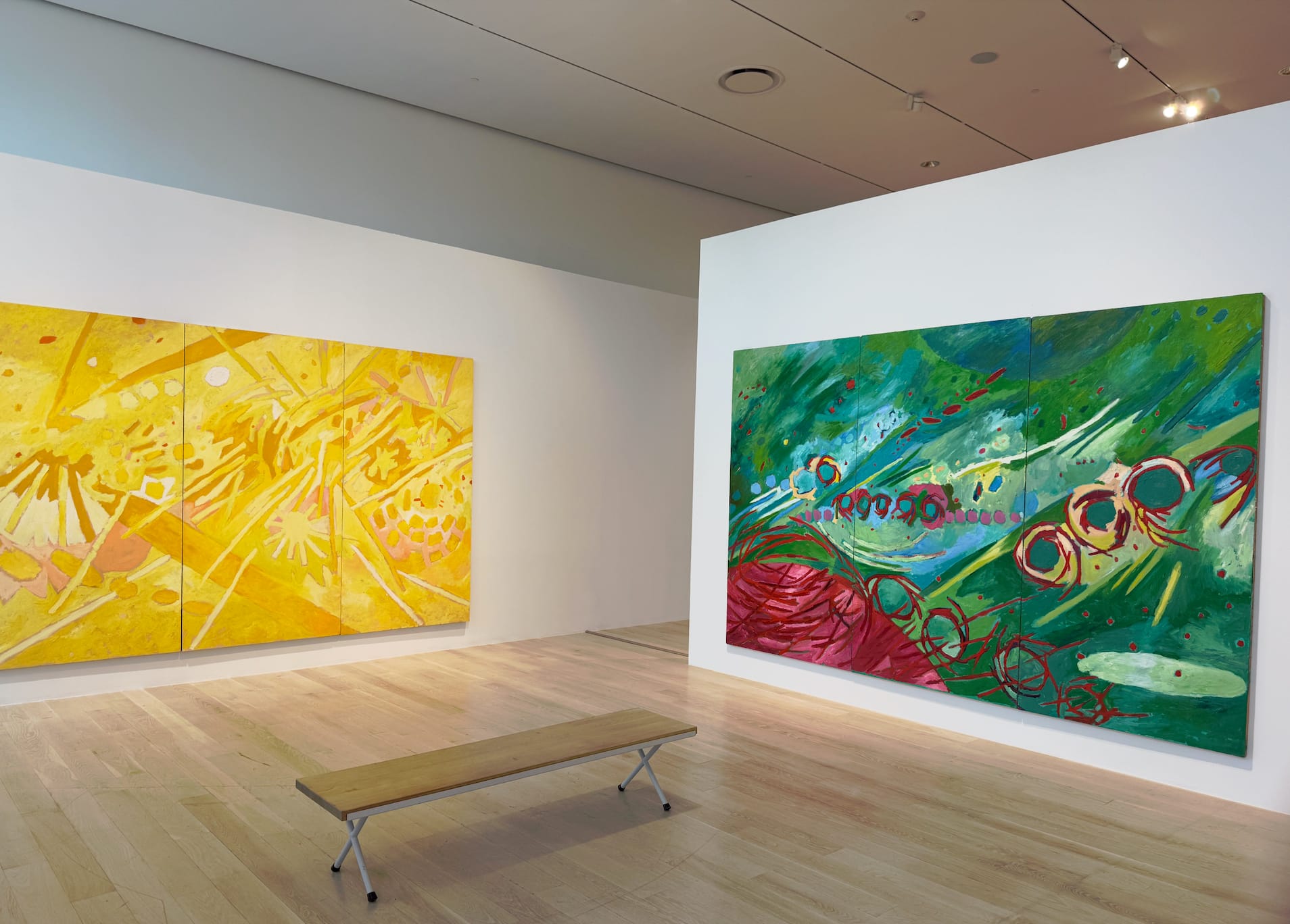 Mildred Thompson’s cosmological paintings and sculptures filled the galleries at ICA Miami with vibrant bursts of color and rhythm. Frequencies assembled her astrophysics-related works dating from 1959 to 1999. One especially invigorating moment emerged in the Music of the Spheres (1996) series: Four planetary triptych paintings — for Mercury, Venus, Jupiter, and Mars — were installed together and accompanied by an electronic music composition that Thompson scored herself, drawing inspiration from NASA’s Voyager recordings. Visitors were immersed in an Afrofuturist world of sound, visuality, and space as Miami sunshine streamed through the windows. —Alexandra M. Thomas