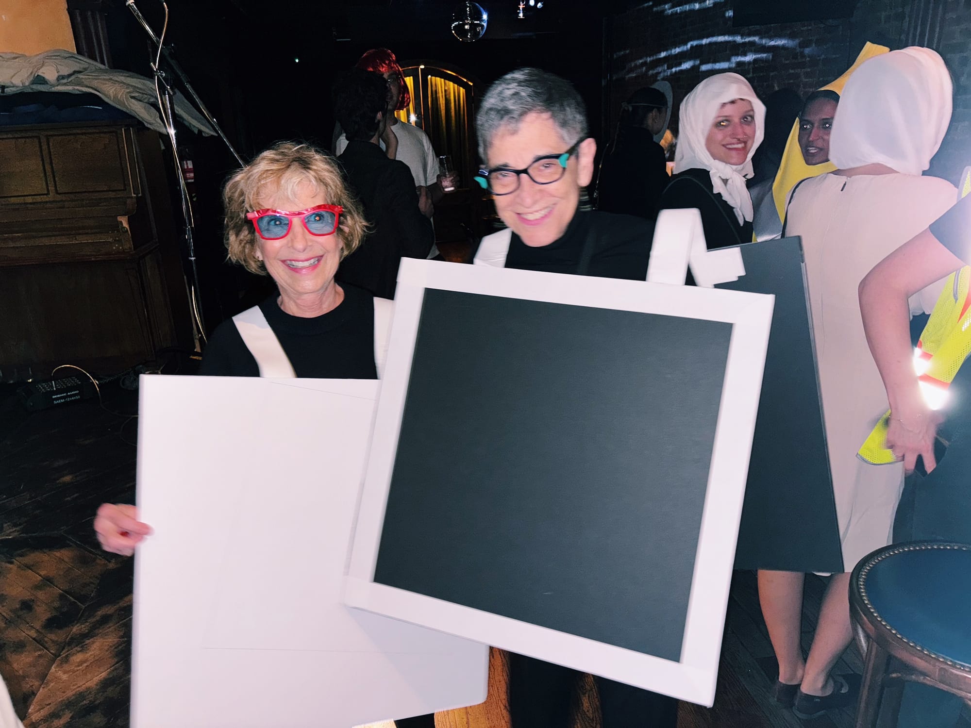 Who else besides an art history professor could be behind this one? That's Carol Ockman (thesis advisor to yours truly), and her partner, Peggy Waller, as Kazimir Malevich's "White on White" (1918) and "Black Square" (1915). Fun art history fact (maybe): Malevich famously first exhibited the latter work in the corner of the room, the same spot a Russian Orthodox religious icon would normally be placed. I see two icons here.