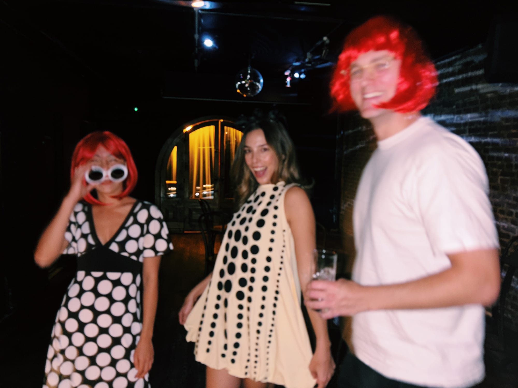 Haven't you heard? Surrealism is back, y'all. Here's Yayoi Kusama and her masterpiece (aka Di Liscia, who spent her lunch break gluing furniture pads onto this dress), with another Kusama for good measure.