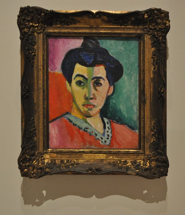 One of Matisse’s breakthrough masterpieces, “Portrait of Madame Matisse or The Green Line” (1905) vibrates on the wall. Even the chunky frame, which I would remove if I could, does little to tone down the color in this small work.