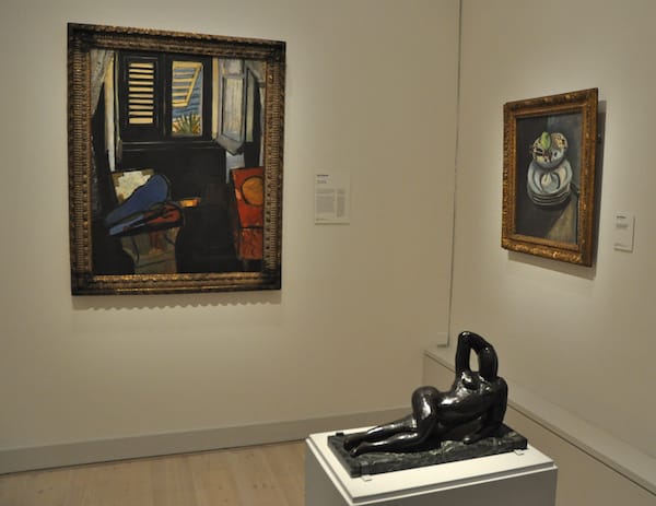 In another corner are more moody Matisses, dominated by black and a sense of shadow, including “Interior with a Violin” (1918), and “Reclining Woman, II” (c. 1929) bronze.