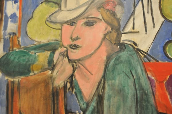 A detail of Matisse’s “The Green Blouse” (1936), which features a sitter who seduces you with her gaze.