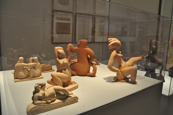 It was easy to lose yourself in the sensuality of the figures, the feathery surfaces of the paintings or the dense forms in the table sculptures. The artist’s love of the female figure is everywhere.