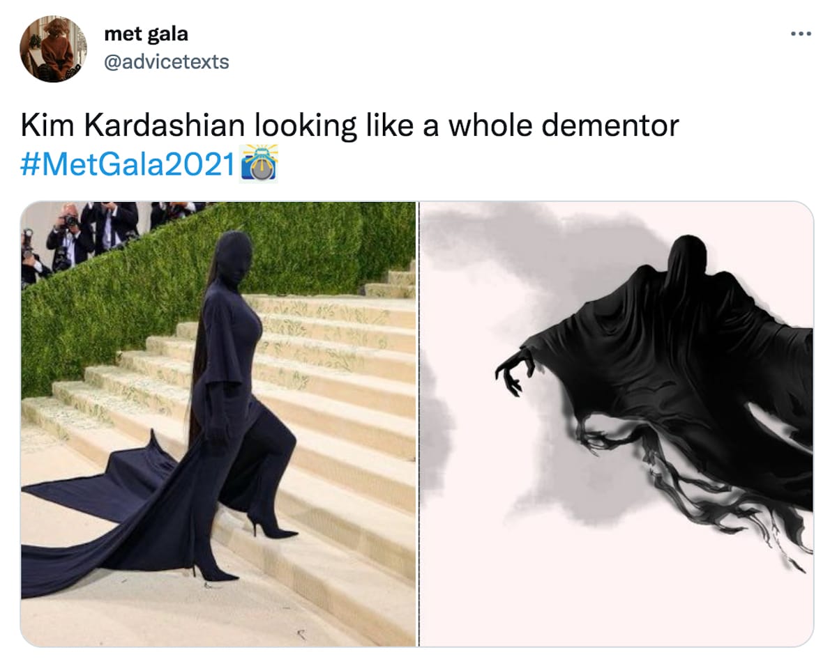 Predictably, the Internet had a rollicking good time with Kim K's terrifying outfit selection. The fact that it was designed by Balenciaga got lost in a sea of memes drawing uncanny comparisons, from the titular character of the Alien franchise to the creepy Grim Reaper figure that appears when one of your Sims dies.
