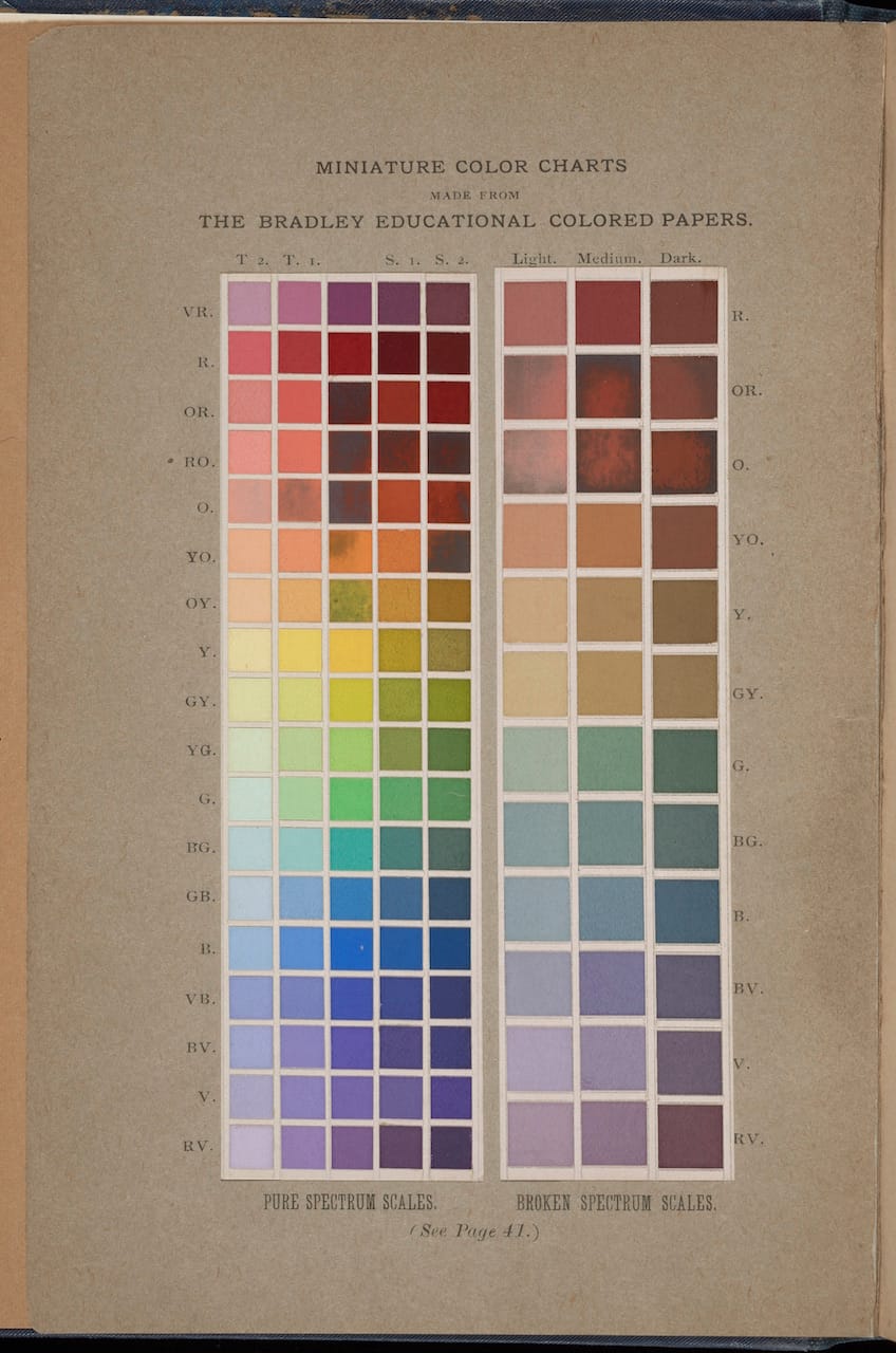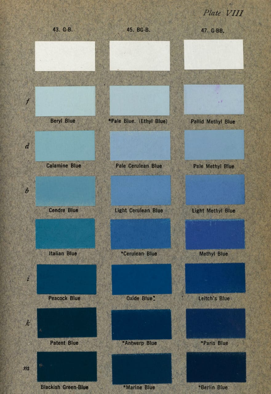 Ridgway wrote in his 1912 preface that “the nomenclature of colors remains vague and, for practical purposes, meaningless, thereby seriously impeding progress in almost every branch of industry and research.” He railed against confusing trade names like “‘zulu,’ ‘serpent green,’ ‘baby blue,’ ‘new old rose,’ ‘London smoke,’ etc., and such nonsensical names as ‘ashes of roses’ and ‘elephant’s breath.'”