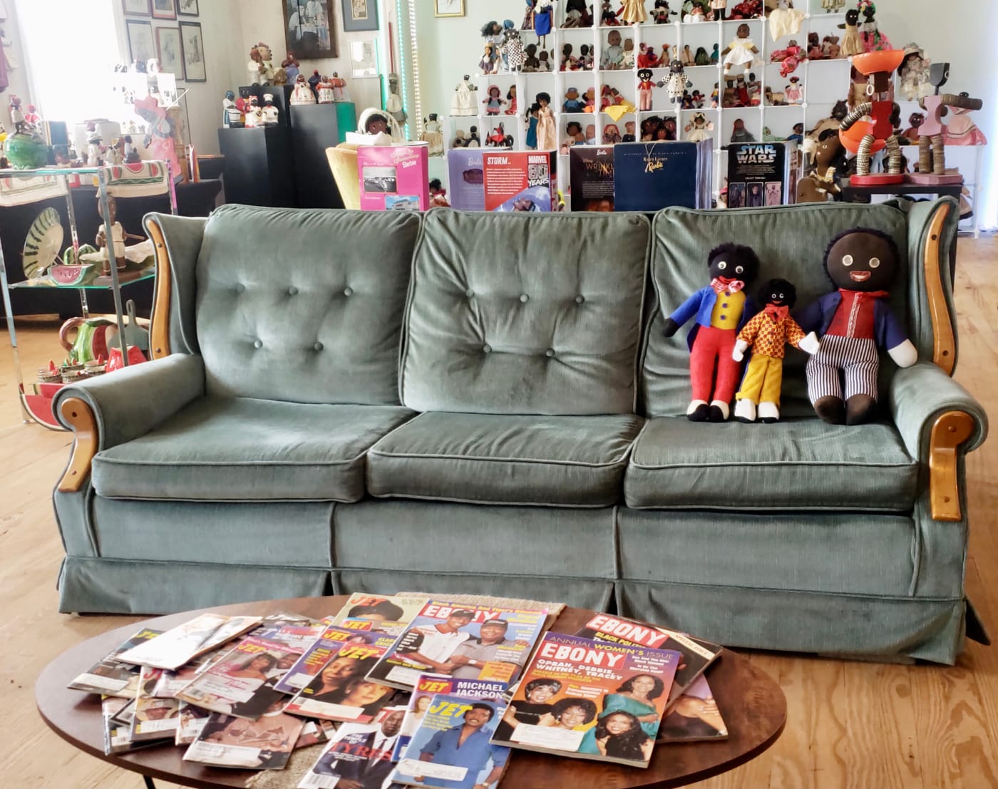 Obviously, the Blactiquing Space presents differently as the collection of a gay Black man who handles these deeply fraught objects with such emotion, connection, and care. One cannot imagine such a collection being acceptable or appropriate in other hands. But even with Jones’ commitment to his collection, the emotional drain of walking people through the experience is inescapable. Because inevitably, as we moved through the room, the tour became confessional. Surely no one can visit the Blactiquing Space and avoid recognizing something that strikes a chord. In my own work, I created and presented a 1:12 scale hoarder dollhouse, and people felt safe to tell me their personal and familial hoarding stories. It takes little imagination to guess what kind of stories Jones has heard throughout the run of his exhibition. He has not just created a space to show objects; he has created a place to have the most crucial and difficult conversation facing our society in crisis.