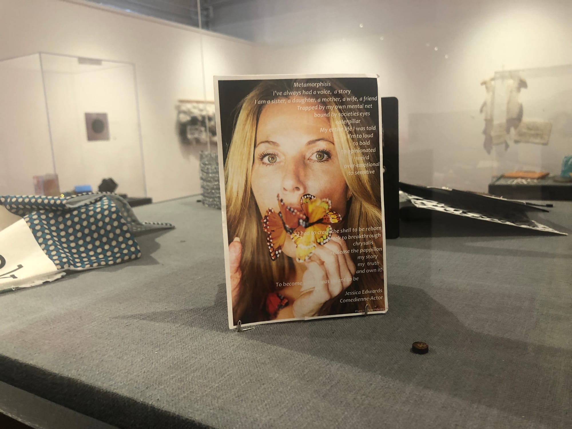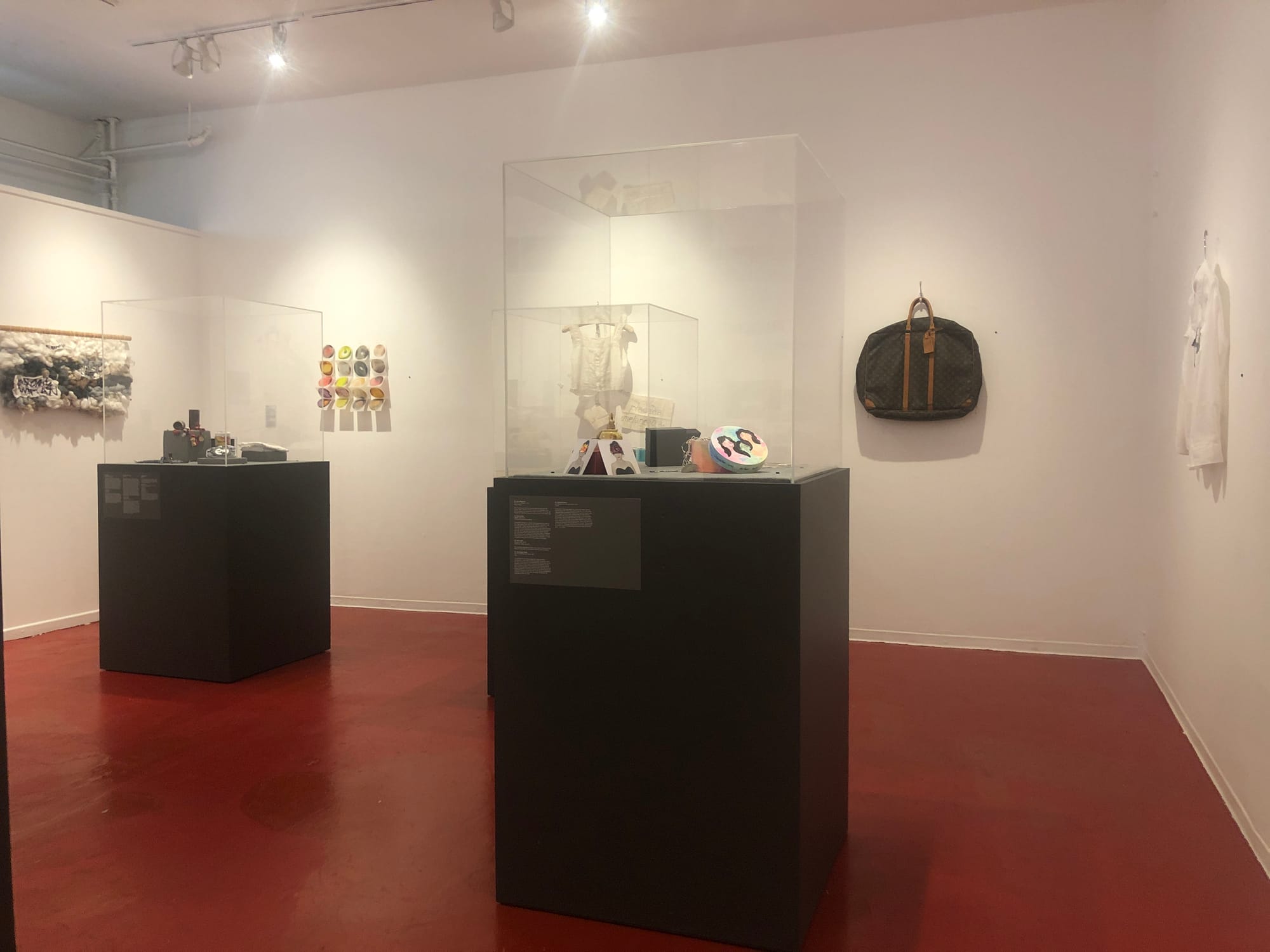 No longer containable to a matchbox, the objects and ideas that flowed between women across borders drawn by men grew to include artworks as varied as a large tapestry titled “She’s so Crafty” by artist Katie Seton woven from, among other things, a shirt emblazoned with the words “Nasty Woman” to a found suitcase titled “Letting go to Become” that reminded artist Mariana Ramirez of her mother. Gertz says that “At the time, there was no expectation that any of the material would be archived or displayed to the public,” but when word of what was happening reached Judith F. Baca, director and co-founder of SPARC, she offered the Durón Gallery at SPARC to showcase the collective effort.
