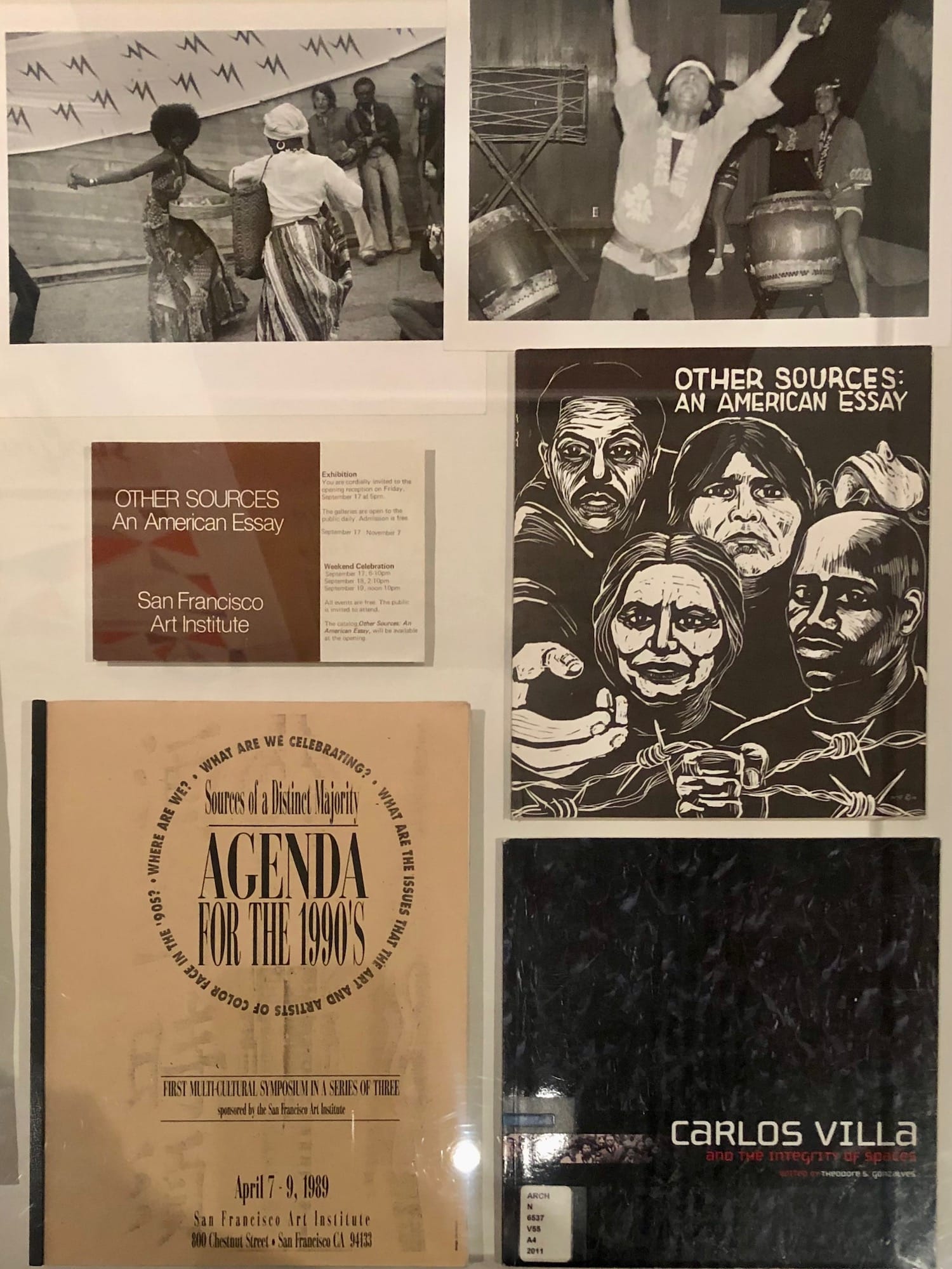 Villa resisted the label “political” to describe his art. However, his interdisciplinary “art actions” were inherently political, rooted in and deliberately centering communities marginalized by the art and academic establishment. These include Other Sources (1976), which redresses narratives missing from the US Bicentennial celebrations; Rehistoricizing the Time Around Abstract Expressionism in the San Francisco Bay Area, 1950s–1960s, which highlights overlooked contributions by women and artists of color to the titular art movement; and Worlds in Collision (1989–2001), a series of exhibitions, symposia, publications, and other projects resulting from Villa’s conversations with feminist art historian Moira Roth and activist, scholar, and fellow SFAI faculty member Angela Y. Davis about the need for diversity and inclusion in museums and academia.