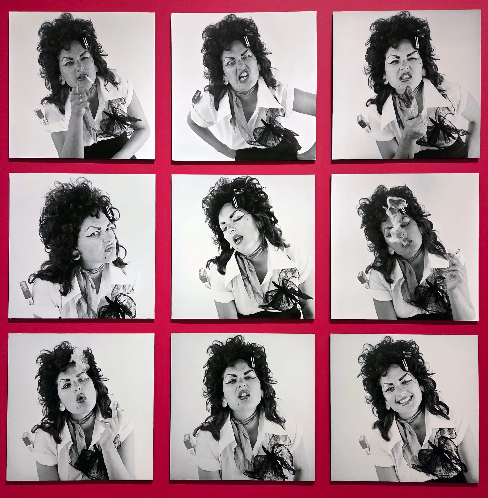 Left: Judy F. Baca photographed by Donna Deitch, “Judy Baca as La Pachuca, from the Las Tres Marías installation and performance” (1976), suite of nine pigment prints; right: Carrie Mae Weems, from “Not Manet’s Type” (1997), silver gelatin print