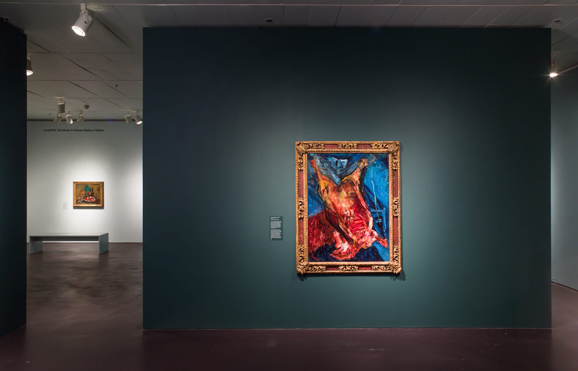 Soutine purchased a beef carcass, hauled it up the stairs to his studio, and hung it from the ceiling. Eager to capture the variations of color in the raw flesh, he began painting, focused on his obsessive and direct observation of nature. The carcass began to dry and to lose the details of its color and texture. Undaunted, Soutine went back to the neighboring slaughterhouses for a pail of blood, which he brushed on the meat to revive its color.When the rotting meat began to smell, the neighbors complained, and, by some accounts, the police were called. In most versions of this tale, Soutine was able to convince the police that his artistic project was infinitely more important than the sensibilities of his neighbors.