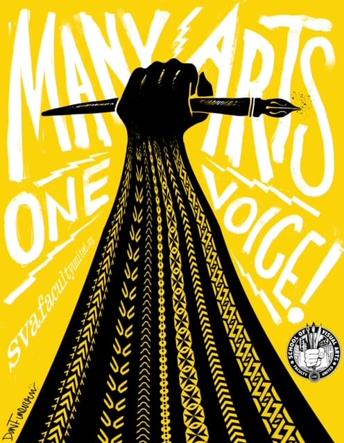 Currently, SVA is at a critical juncture where it could set the standard for art schools and higher education institutions in the United States. Not only could its faculty vote yes to unionize (as many like myself are doing), but also its administration could embrace the newly formed union of adjuncts and use this as an opportunity to be a leader in remodeling the terrain for ancillary faculty across the nation. Dialogue could ensue; a new community could emerge; and the school could make the choice to grow the health of its huge supplementary set of “temporary” artist-teachers, modeling a prototype for institutions negotiating an increasingly unpredictable future.