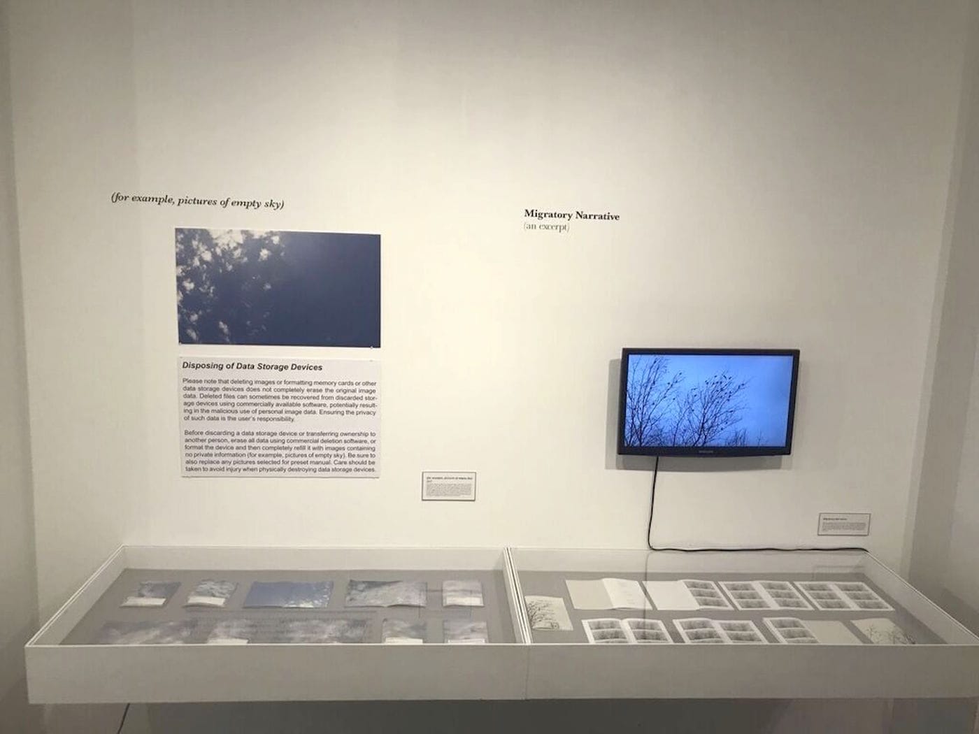 It’s no surprise, then, that Altalo’s more recent projects more directly involve digital media. This is the case with her 2017 piece, “(for example, pictures of empty sky),” whose backdrop is the note on digital memory cards that images deleted from them may not be fully deleted. Many devices suggest replacing the deleted images with those that do not contain personal data: “for example, pictures of empty sky.” Taking this directive literally, Alatalo created an edition of unique books, each filled with images from a full memory card. “(for example, pictures of empty sky)” continues her early publishing practices that interrogated technology’s relationship to the structure of the book, and more expansively, technology’s relationship to public and private narratives. Genre fiction is often for private consumption, filled with sexually explicit details that indulge our most private desires. Similarly, the camera roll on our phones and digital cameras have become another narrative form that reveals private histories — why else would we go to such lengths to ensure that these images are fully deleted? What stretches across Alatalo’s diverse body of work is an interest in public and private narratives, and how images and other commercial methods tap into these narratives, revealing what’s universal in even our most private longings.