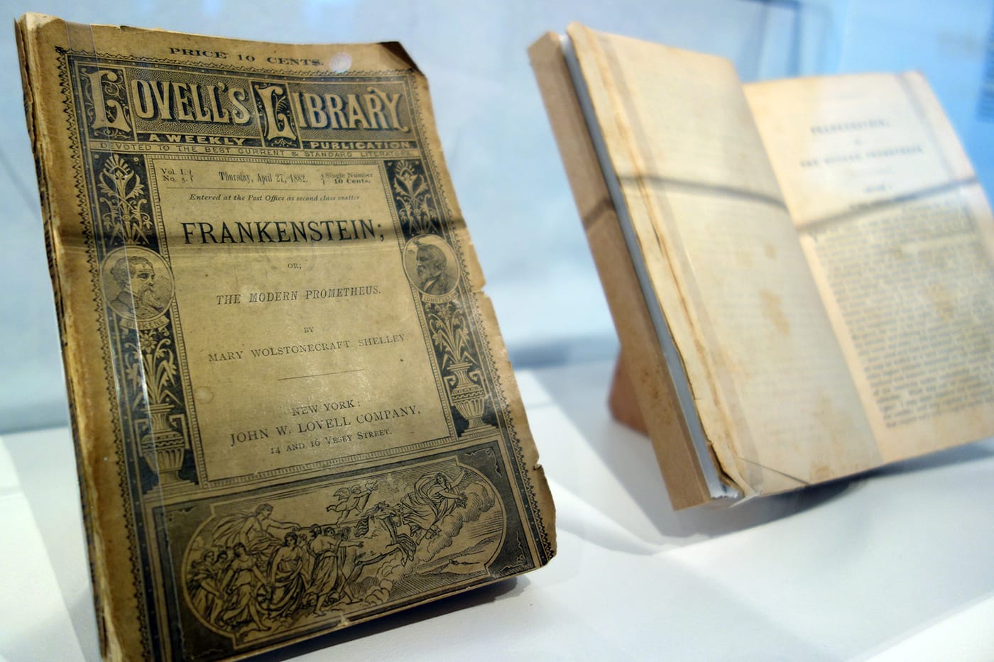1882 copies of Frankenstein; or, The Modern Prometheus by Mary Shelley, a novel which features the North Pole (photo by the author for Hyperallergic)