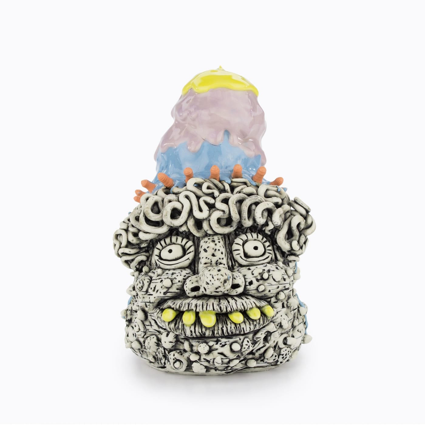 Some of the other 50-plus artists clowning around at the exhibition include artist-couple CHIAOZZA and sculptor/painter Rebecca Morgan. Morgan, who collaborated on a porcelain jug shown Ron Geibel at the gallery, told me, “In my own work, I employ aspects of clowny over-exaggerated caricature. … Ultimately, I believe clowns are an employment of escapism; We can digest our own dramas and empathetically see aspects of ourselves in the circus-like minefields we roll around.”