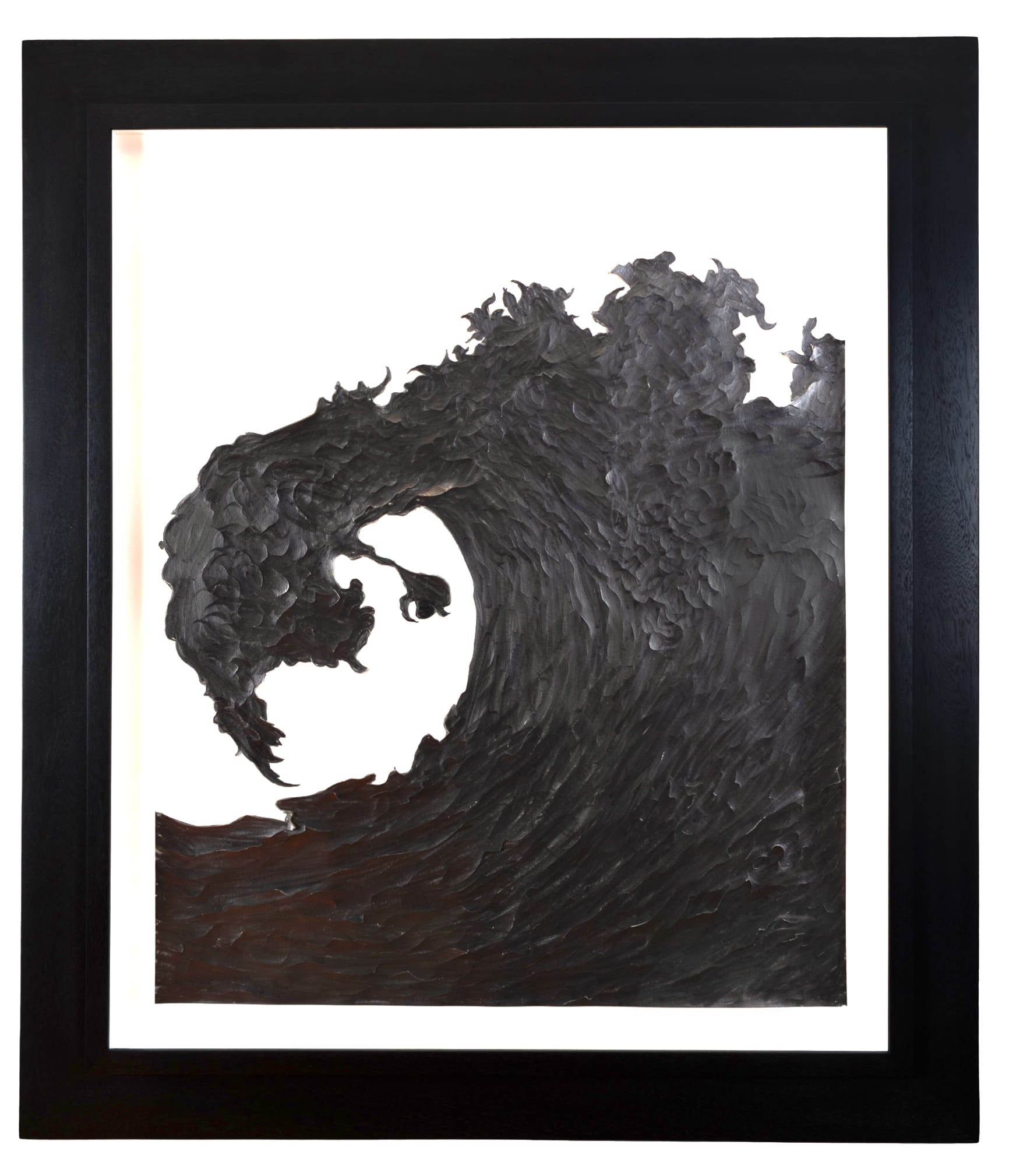 DuVerney gives me gorgeous forms and then hits me with her politics with her titles: “A Stoic Mountain of White Guilt” (2020) and “Black Power Wave, A Mounting Lurch” (2020). The wave is reminiscent of Hokusai, but DuVerney makes this form with graphite, so it has a graphic quality that is very much about the dark pigment of her pencil carving a curling, almost grasping shape into being. These compositions are snarling, gnarled, muscular. She offers mountains and waves like elemental forces that for her are commensurate with the elemental forces of Black liberation.