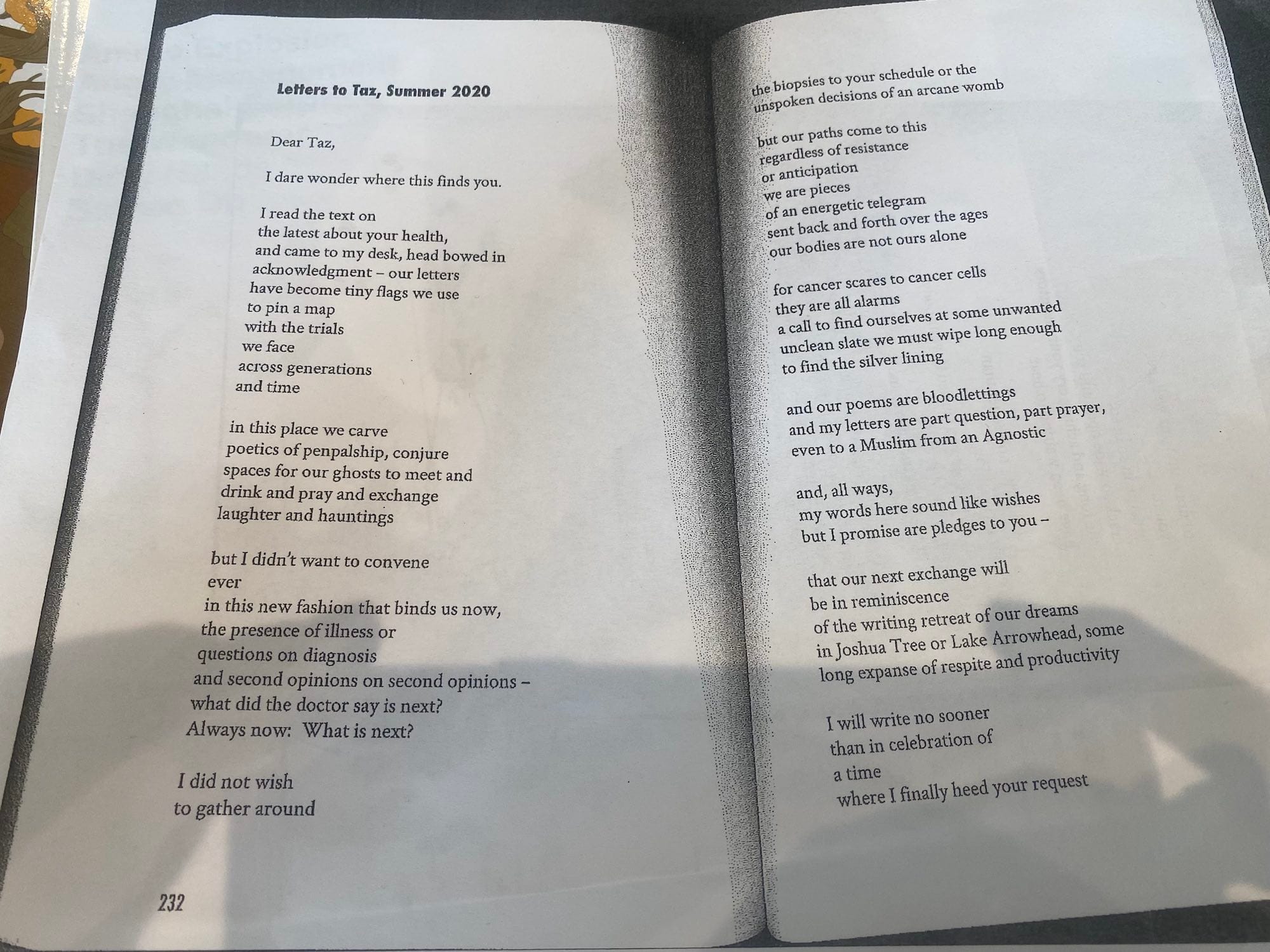 This collaboration, and the two poets’ powerful exchanges, would have made a worthy section in the exhibition, as they point to larger themes connecting the history of Asian American identity, colonialism in Asia, Islamophobia, and the role of poetry in helping us explore difficult histories. Ahmed’s original poem conveys the possibilities of future exhibitions of Asian American art and activism, as she draws lines between her grandfather’s experience in Lahore and kato-kiriyama’s grandfather’s experience in California: