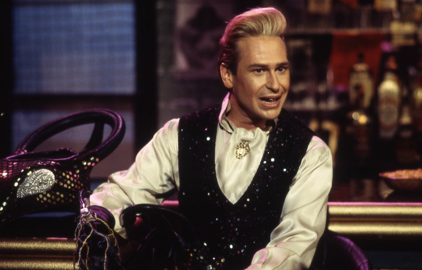 The troupe’s pivotal contribution to this was their centering of queer characters and themes. The show both normalized LGBTQ+ life and addressed taboo issues, from the AIDS crisis to gay marriage and parenting, mostly led by Scott, the troupe’s only gay member, and his philosopher-provocateur alter ego, Buddy Cole — whose monologues affirmed the show’s queer-positive stance and were the closest it came to direct political engagement. But the entire troupe took part in refusing the male heteronormative mode typical of sketch comedy and the rampant homophobia of 1980s and ’90s comedy in general.