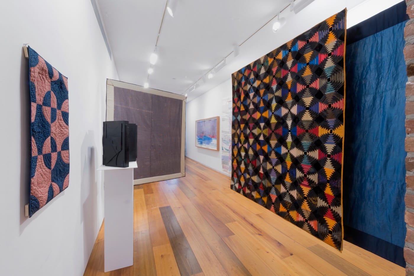 Function to Freedom: Quilts and Abstract Expressions, an exhibition at the recently opened Sara Kay Gallery, elevates and celebrates artworks created by women across several mediums. The relatively small gallery space brims with 18th-, 19th-, and 20th-century quilts, as well as Abstract Expressionist painting and sculpture. The result is a panoply of pattern and color.