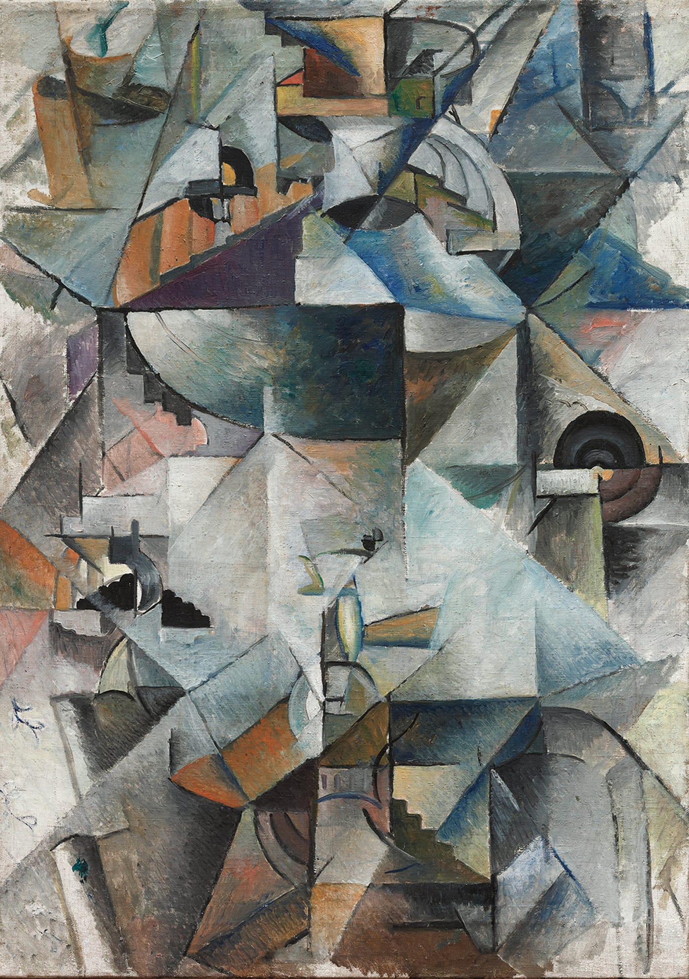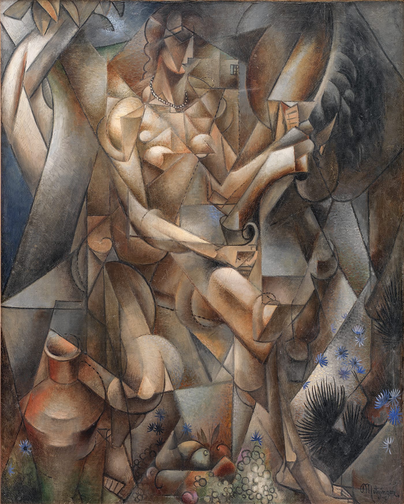 The painting is a colorful example of Analytical Cubism — the movement’s earlier phase, also seen in Picasso’s “The Aficionado” (1912) — which sought to demonstrate how human eyes merge countless bits of visual information into a coherent pictorial whole. This goal of representation was philosophically driven by the writings of French mathematician Henri Poincaré and the philosophers William James and Friedrich Nietzsche. It also drew on Henri Bergson’s concept of élan vital — vital force — which Gilles Deleuze elegantly explains in his book Bergsonism.