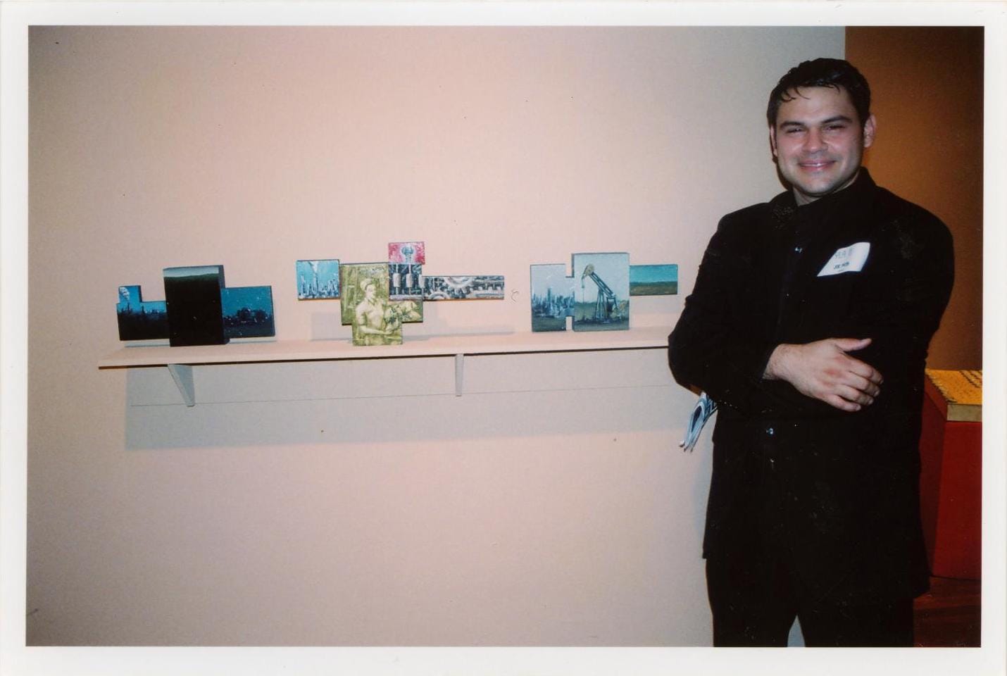 Artist Joe Peña at the Young Latino Artists XI exhibition at Mexic-Arte Museum on October 28, 2006 (photo courtesy Mexic-Arte Museum and the University of North Texas Libraries, The Portal to Texas History)