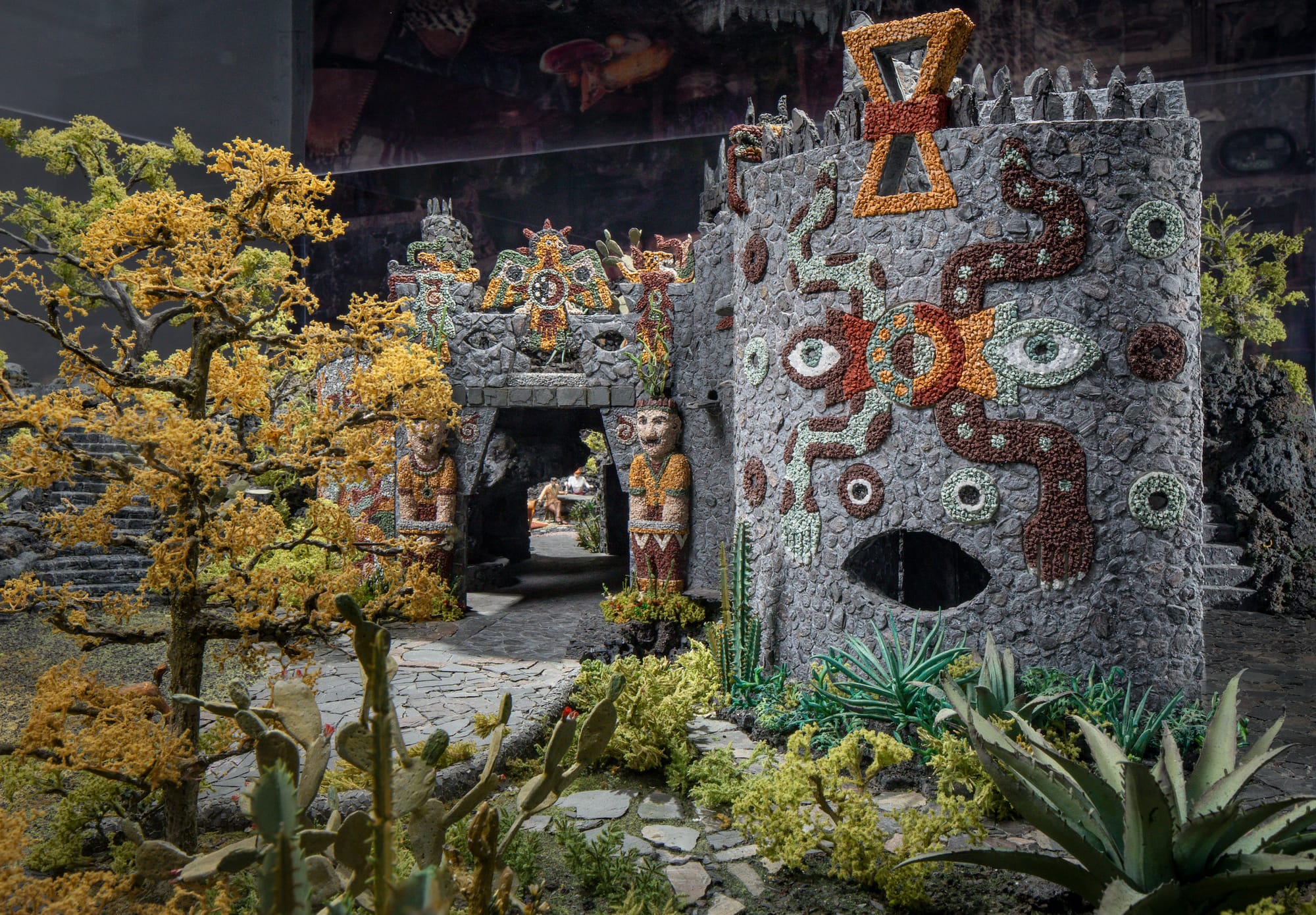 With its kaleidoscopic, Gaudí-esque mosaics and overflowing gardens, Casa Cueva has long been a subject of fascination and myth-making in Mexico. Elsewhere, O'Gorman's fantastical dwelling has mostly remained a niche curiosity, the province of specialized blogs and expert scholarship. Its relative obscurity is due at least in part to a dearth of documentation: The house was acquired and largely destroyed in 1969 by Helen Escobedo, artist and longtime director of the National Autonomous University of Mexico's (UNAM) Fine Art Department, and for decades, only photographs testified to its grandeur. That changed with the recent arrival of a maquette, first shown last year at INBA's Museo Nacional de Arquitectura and now as part of the exhibition In Praise of Caves. There, it is staged amid works by artist Isamu Noguchi, who did not himself dabble in the domestic adaptation of caves but whose sunken gardens and biomorphic sculptures are sublime tributes to the endless formal possibilities of topography.
