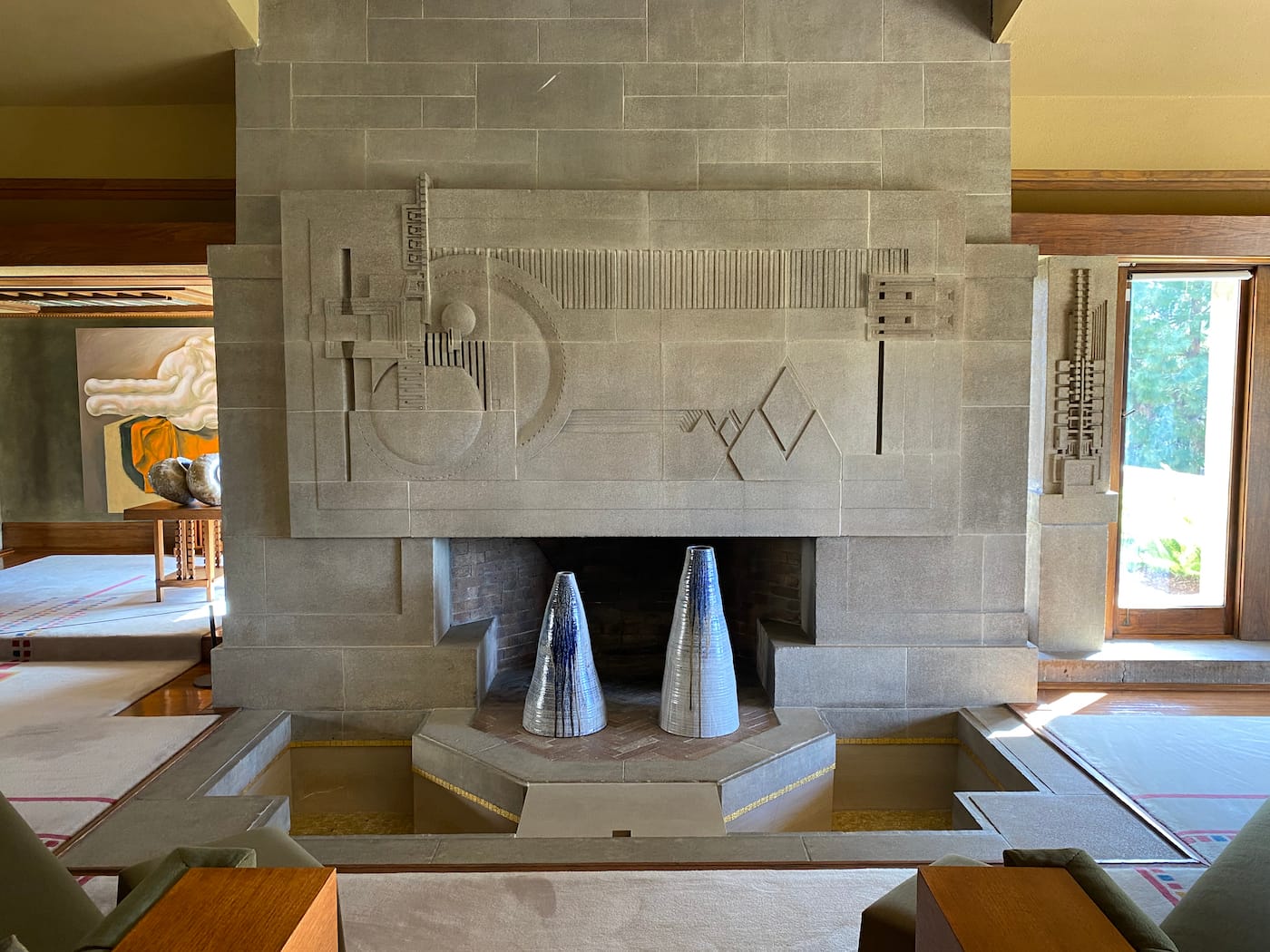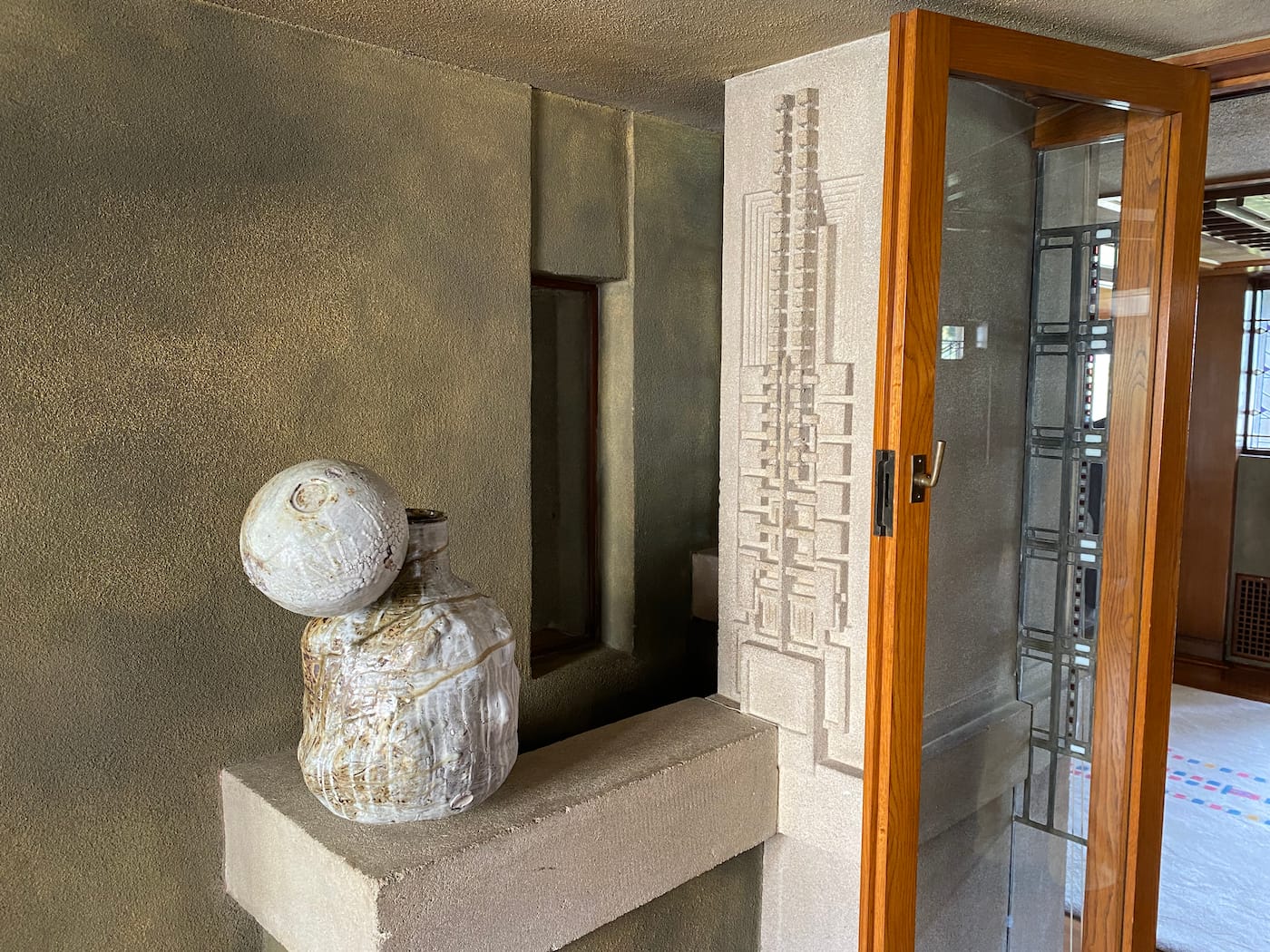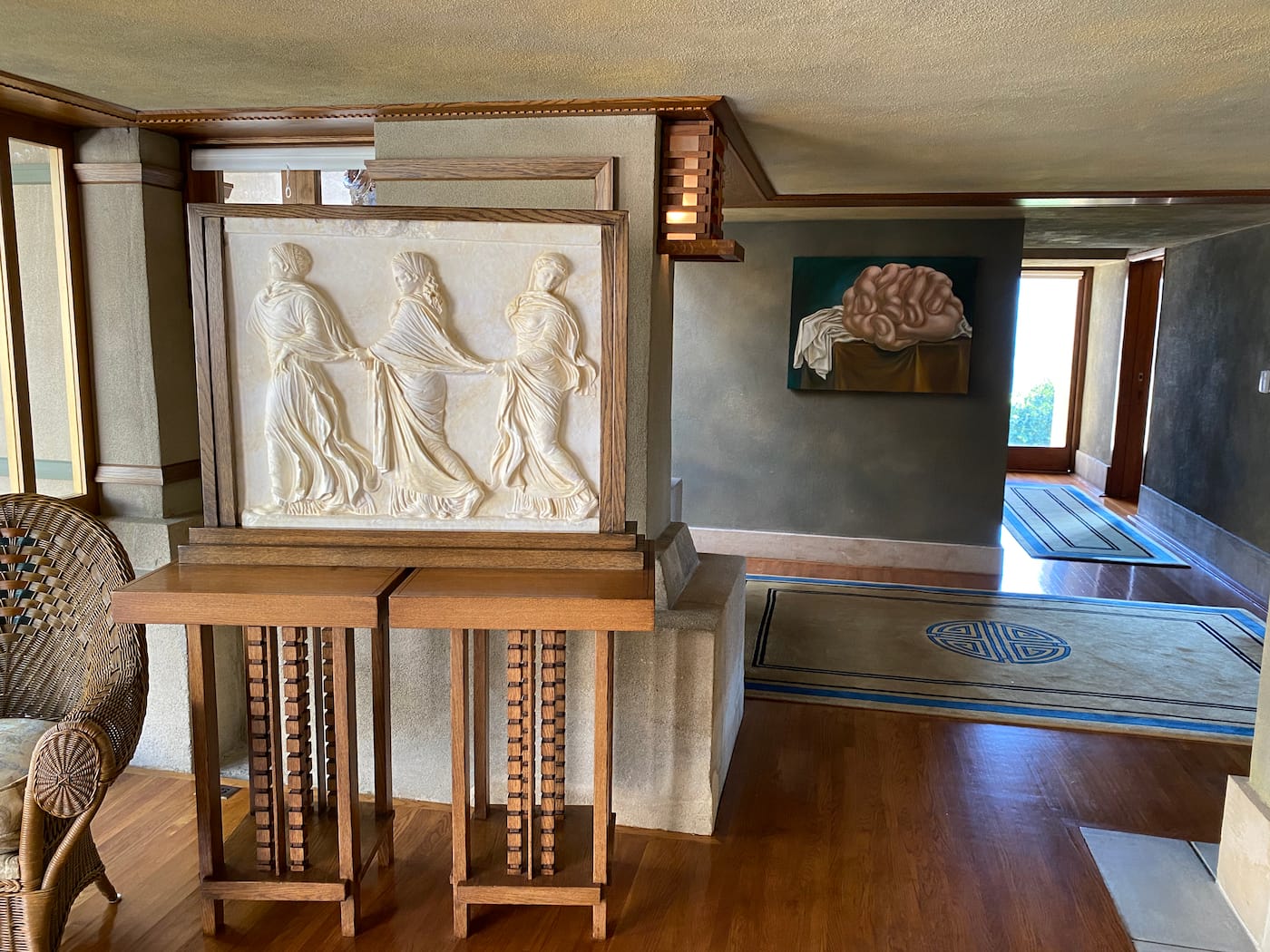 LOS ANGELES — When artists Louise Bonnet and Adam Silverman pitched the idea last year of an exhibition of their work at the Hollyhock House, Frank Lloyd Wright’s first LA commission, they didn’t get their hopes up. “We thought they would just say no, but we’d give it a shot,” Silverman said. The LA-based couple had been looking for a place to show their work — Bonnet is a painter and Silverman a ceramicist — outside of a traditional white cube. “We were interested in something domestic,” says Bonnet. “The only place we had ever seen our work together was in our house.” To their surprise, Hollyhock House's curator Abbey Chamberlain Brach agreed, and last month, their two-person show Entanglements opened, the first such exhibition of contemporary art in the building since it became a house-museum a half century ago.