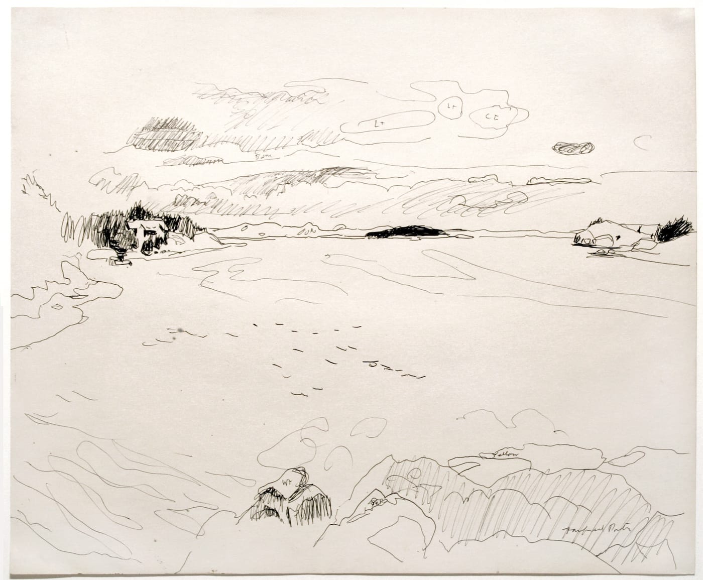 Perhaps Porter’s inherited cultural authority inoculated him against this naïve American assumption that aesthetics and history lead to social progress. He was born in 1907 in Winnetka, Illinois, a place he dubbed the “Scarsdale of Chicago.” His family was so well-off that he inherited Great Spruce Head Island off the coast of Maine. He studied at Harvard, and later, The Art Students League; he traveled throughout Europe in the 1920s and 30s. An avowed atheist and early prophet of humanity’s ecological suicide, Porter read Alfred North Whitehead and Leon Trotsky with equal enthusiasm. In the 1930s, he got involved with The Rebel Arts Center and edited the socialist magazine Arise.