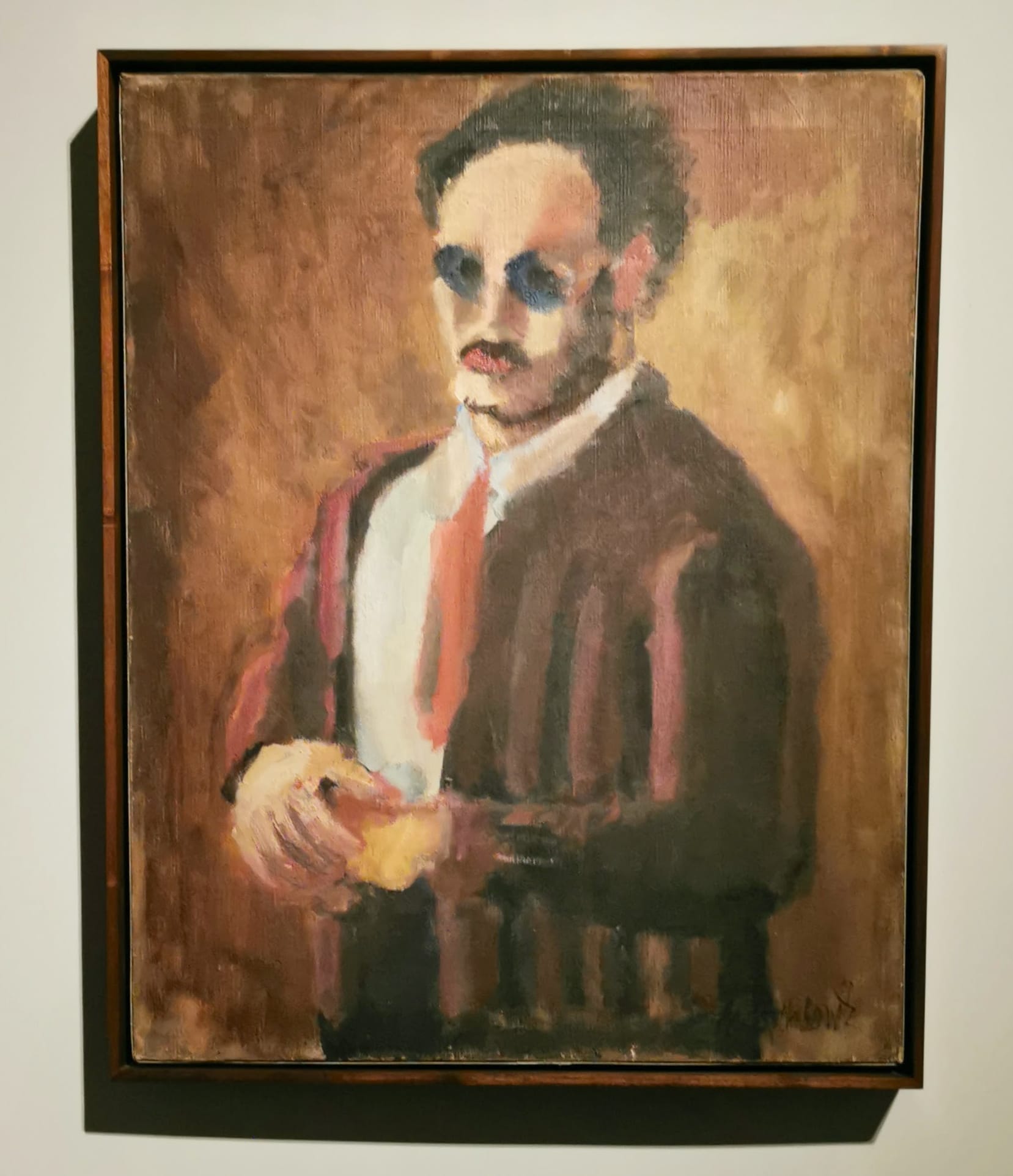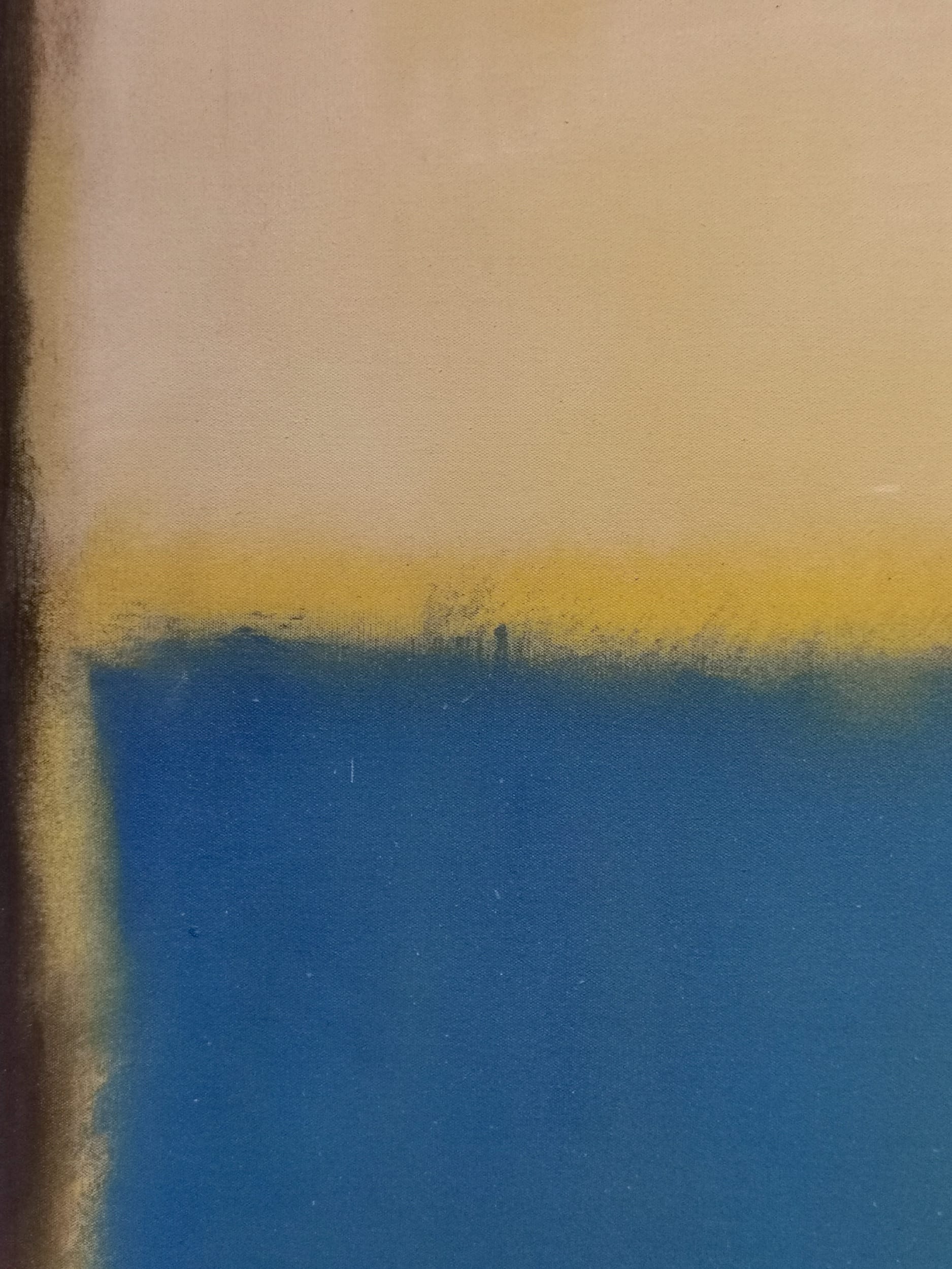 Markus Rothkowitz was born in 1903, in what was then the Russian Empire and what is today Latvia, but 10 years later he emigrated along with his family to the US. They were from the educated middle class, and Markus was a brilliant youth, leaving Yale University in 1923 and joining the Art Students’ League in New York. He was naturalized as an American citizen in 1938 and soon changed his name. For the rest of his life he was Mark Rothko. The exhibition traces his life’s course, from Gallery 1 in the basement, when he was experimenting with figurative art and produced the least revealing self-portrait imaginable — his eyes black spots behind dark glasses, hands held together in front of his chest — all the way up to Gallery 11 on the top floor, containing works in the period before his death in 1970.