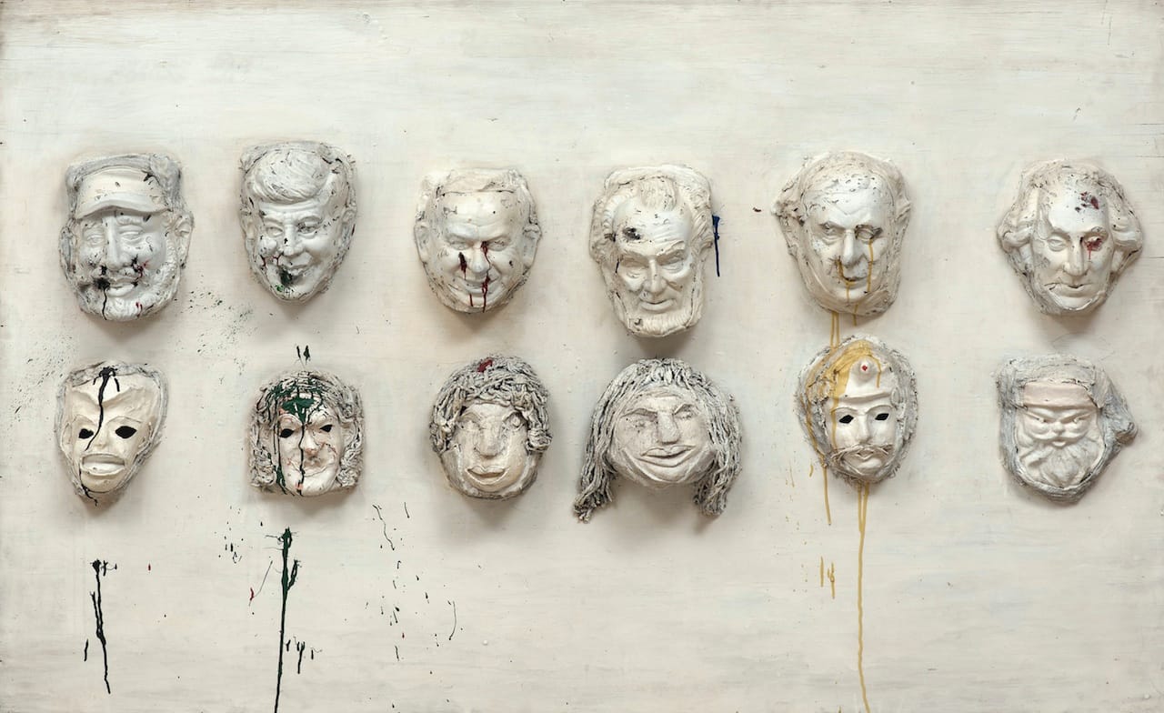 The show opens with collages and paintings in earnest dialogue with Pollock, Dubuffet, and Rauschenberg that the self-taught artist made between the ages of 28 and 31. From 1960 to 1963 she executed her famous Tirs (Shoot) pieces, which drip like Pollocks but which de Saint Phalle produced by shooting a rifle at balloons of colorful paint mounted on white canvases. In the early 1960s, this aristocratic Catholic woman who’d been brought up in a strict household attacked the church with sculptures in the shape of altars strewn with crucifixes. In the mid-‘60s she constructed giant, heavy-hearted bride-ghosts and modern Venus of Willendorfs squeezing out babies. In perfectly calibrated formal choices, de Saint Phalle disfigured long-held articles of faith — high art, the family, the church.