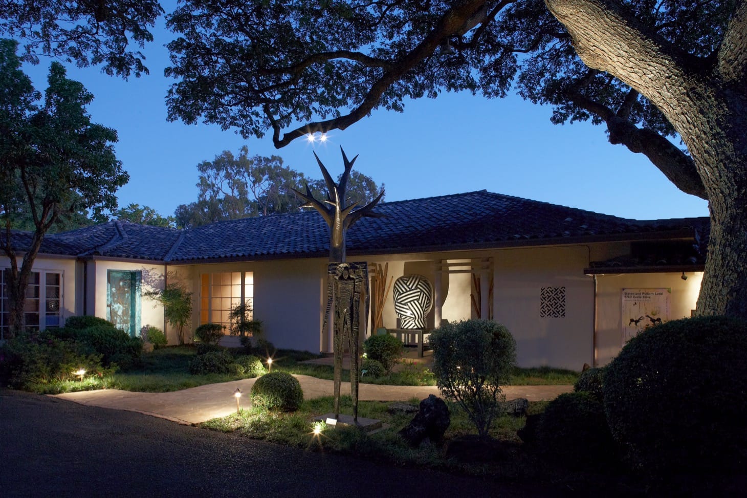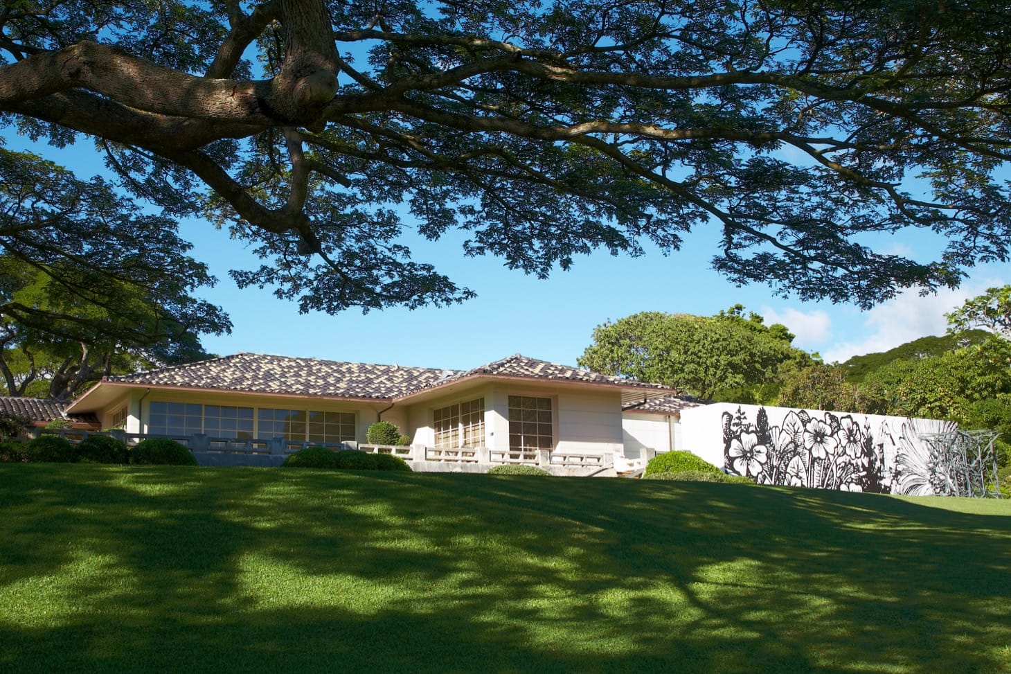 Spalding House itself was commissioned in 1925 by Anna Rice Cooke, the widow of one of Hawaii’s sugar barons and a daughter of American missionaries. It was Mrs. Cooke — a sort of patron saint of Western art in what was then the Territory of Hawaii — who founded the Honolulu Academy of Art in 1922, giving to the organization the site in downtown Honolulu where her 19th-century Victorian manor once stood and where the HMoA stands now. Her new house, in the quiet Makiki Heights area above the city, designed in a regional idiom combining Modernism with traditional Chinese decorative details, offered a stunning view of lower Honolulu and the Pacific Ocean. When she died in 1934, Cooke left this second house and estate to her beloved Academy which the trustees subsequently sold, that is, sold for the first time.