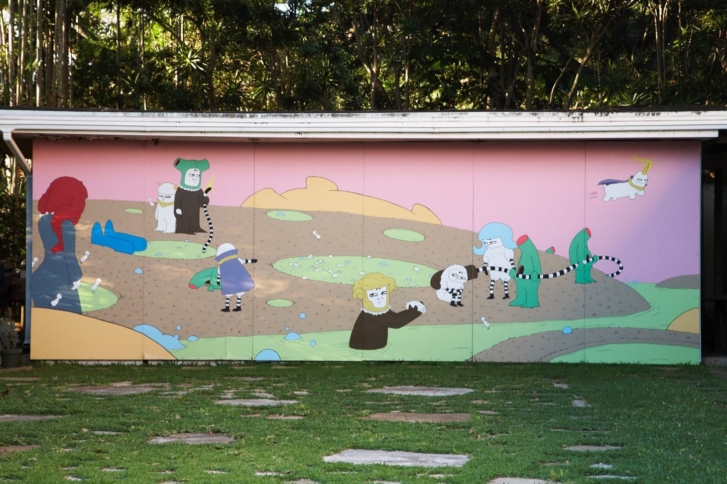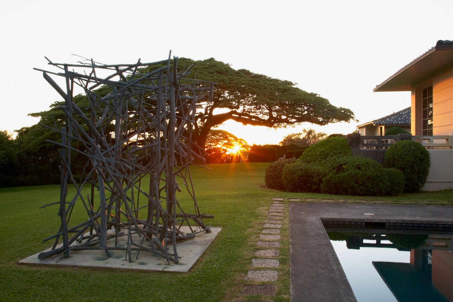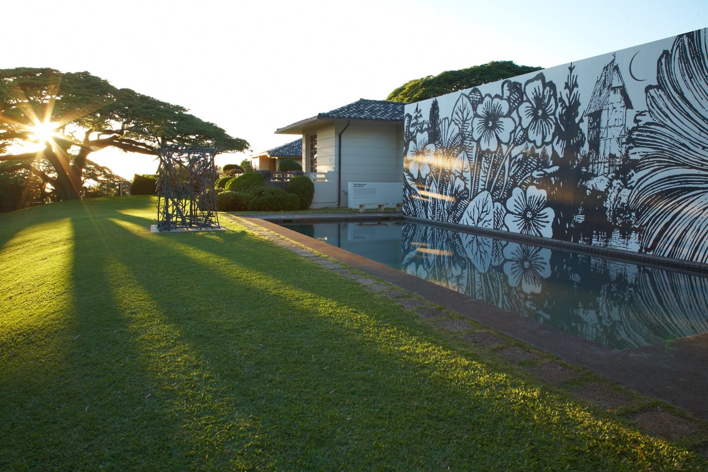 For over two decades artists from Susan Rothenberg and Bruce Nauman, to David Nash, Patrick Dougherty, Vic Muniz, Futura 2000, Richard Misrach, Paul Pfeiffer (a Honolulu native) and Yoshitomo Nara, to name a few, exhibited or made site-specific work for the museum. A sculpture by Jed Garrett greeted people arriving at the house. A Deborah Butterfield horse still sits on the lawn in the hillside garden, near where Dougherty wove his enormous sculptures from found sticks. David Hockney flew to Oahu for the permanent installation, in the estate’s pool house, of the original 1981 sets he made for the Metropolitan Opera’s production L’enfant et les sortilèges by Maurice Ravel. TCM gave Oahu, and especially its artists, for that brief moment in time, a kind of casual yet meaningful contact with the rest of the world no other Hawaii institution did or does to this day, outside the poorly funded art department at the University of Hawaii. As John Koga, a Hawaii-based sculptor put it, “We had so much fun up there.”