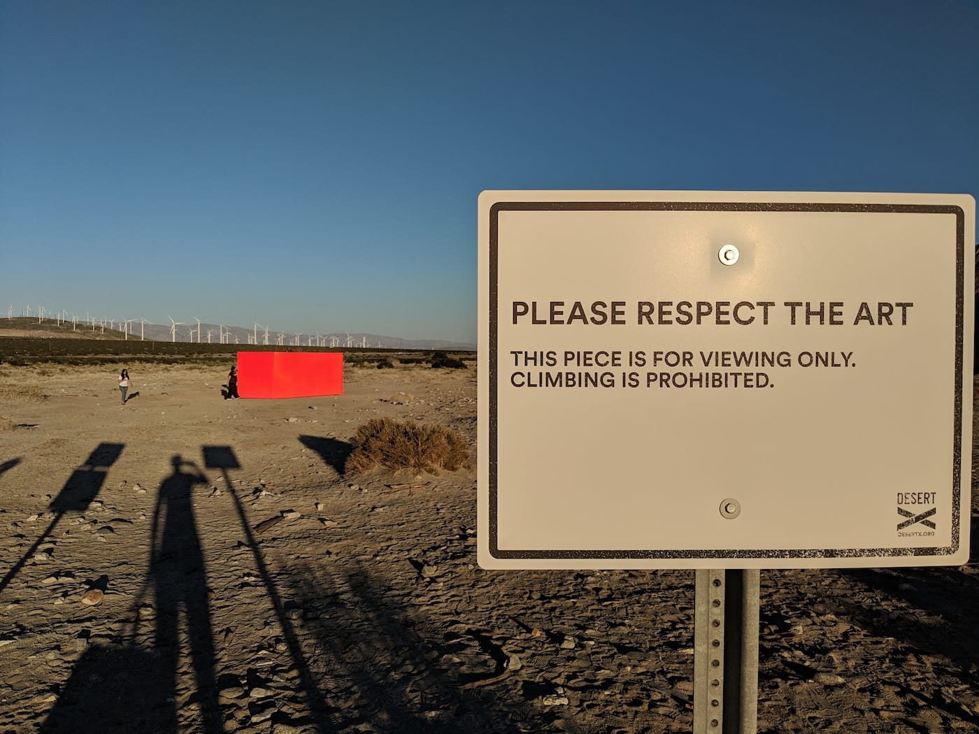 For a site-specific art exhibition that claims to be about attention to the environment — “the message of the art,” said Wakefield, quoting Bruce Nauman in the catalogue, is “‘Pay Attention Motherfucker’” — Desert X 2019 seems surprisingly insensitive to context. Perhaps this is because the artist list was finalized relatively late, and only announced weeks in advance of the launch, and some sites difficult to secure. But whatever the reason, the disconnects remain striking.