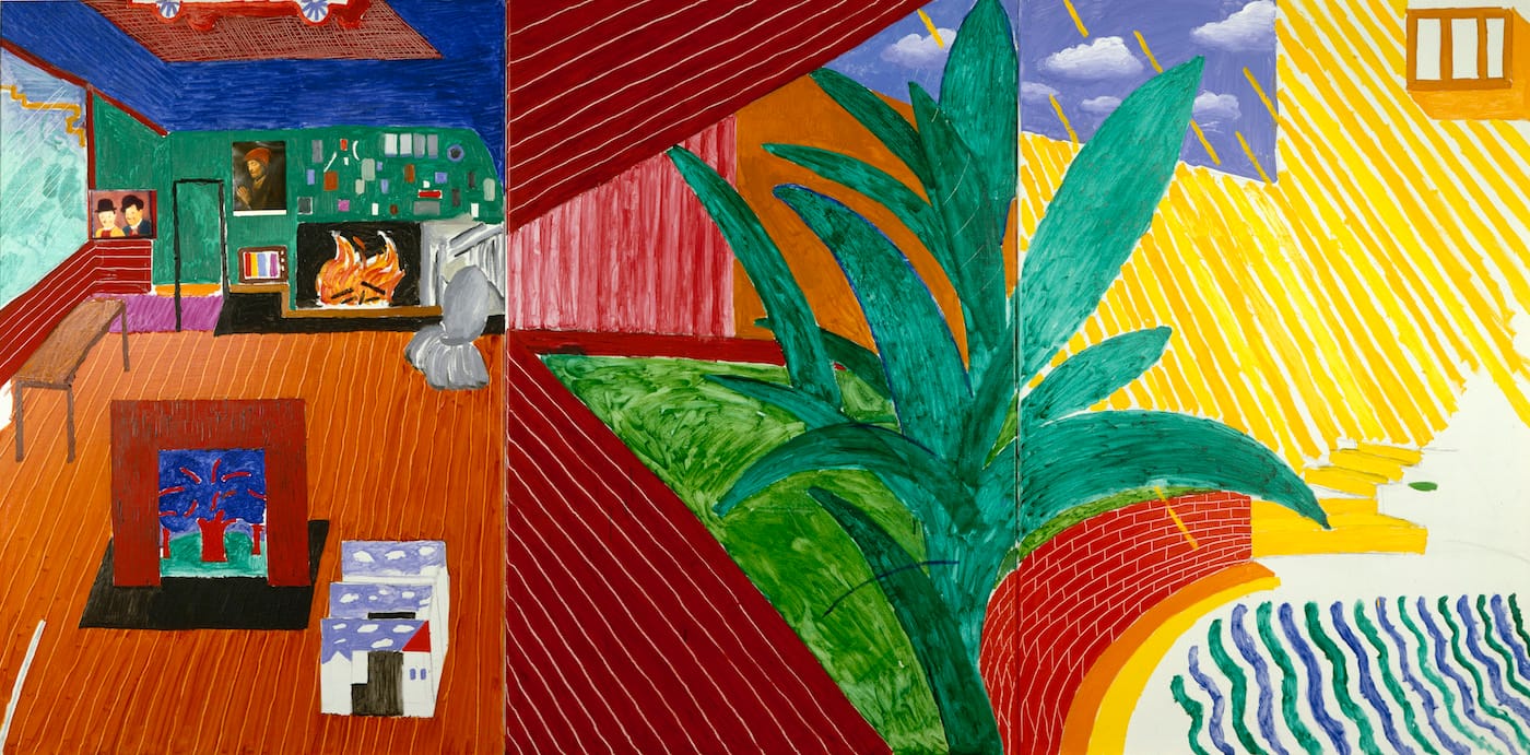 LONDON — Since the passing of Lucian Freud, David Hockney has come to be regarded as the UK’s greatest living painter, his name a byword for extraordinary draftsmanship and an altogether less “passionate” style of painting. The queues snaking around the block for his retrospective at the Tate demonstrate the compelling popularity of his bright colors, the aesthetic pleasantness of his vibrant landscapes spanning his near-60-year career, and his capturing of glamorous sex and sun in the 1960s. Hockney is comparatively dispassionate, however, because his method of working is instructively informed by inquisitive intellectual and technical explorations. Tate Britain curators Chris Stephens, Andrew Wilson, and Helen Little make this clear by their choice to arrange this chronological survey around Hockney’s technical interests, theming each segment in the context of, say, abstraction, naturalism, and optical theories regarding cameras. The chronological method of display overall, however, reinforces what has been cited by many a critic and will be obvious to any visitor: Although the technical interest is in play throughout his career, the visual quality of his work undeniably suffers and declines following his 1960s peak.