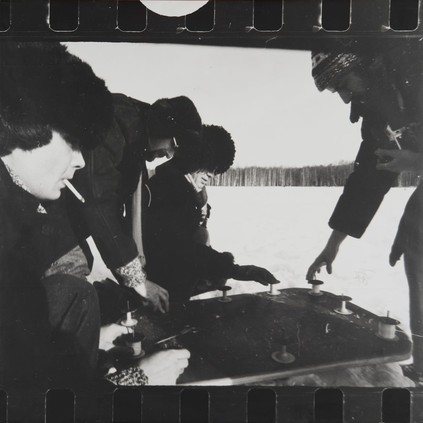 A questioning of the nature and status of art was also behind the activities of Collective Actions, a loose association of artists with fluctuating membership first brought together by Andrey Monastyrsky in 1976. The group organized so-called “trips out of town,” in which selected artists, often accompanied by friends or spouses, would meet in the fields outside Moscow to collectively carry out or witness absurd or enigmatic actions. For example, “Ten Appearances” that took place on February 1, 1981, involved 10 participants, who were instructed to assemble in a field and then separate, wading through the snow toward the forest and pulling a string behind them until it ran out and the field was no longer visible. The performances were extensively documented, discussed, and collectively interpreted by the members of the group. The clandestine, apparently meaningless actions subverted the official Soviet ideology of pragmatic labor and universal liability, bonding the members of Collective Actions into an alternative community with its own private rules, rituals, and philosophy.