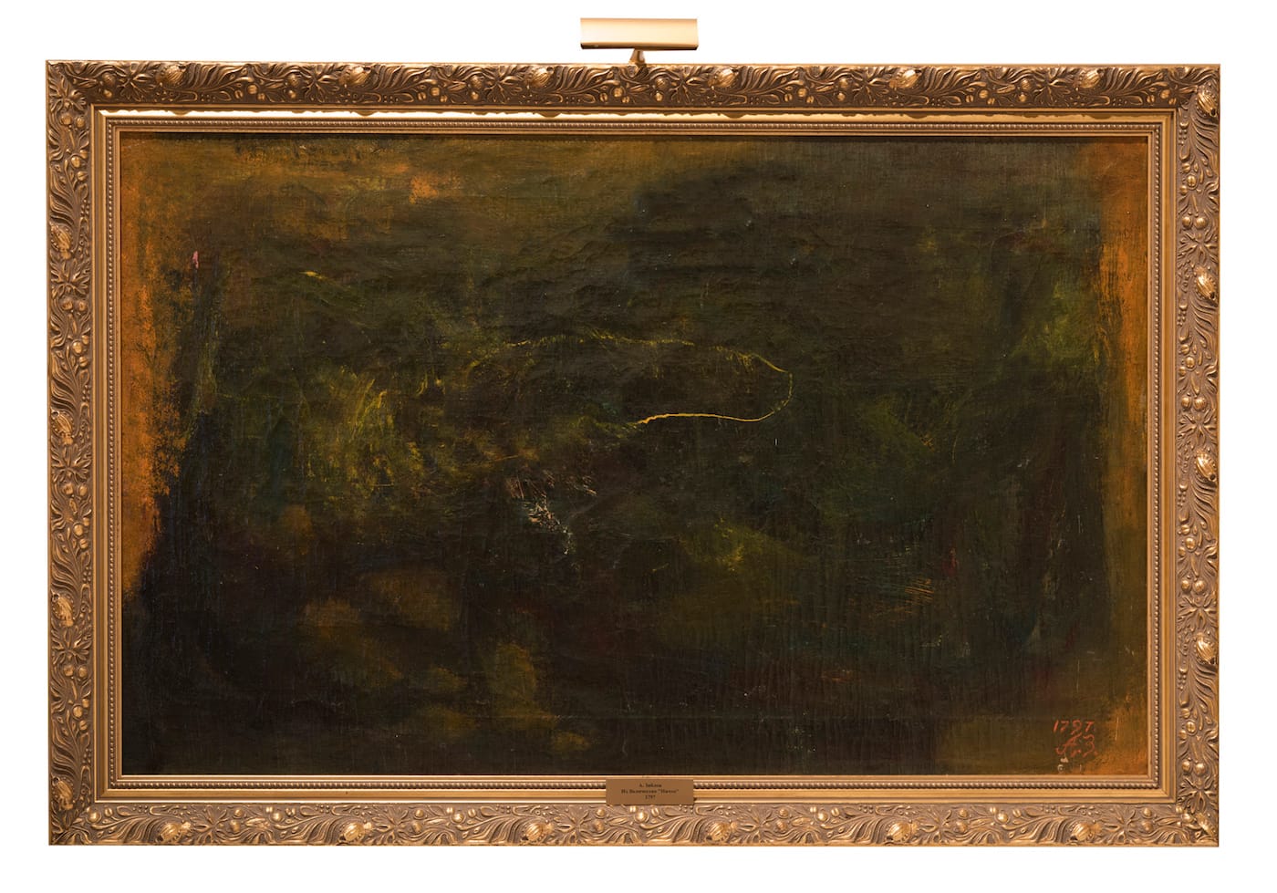The introverted character of Nakhova’s work contrasts strongly with the tongue-in-cheek projects by the artist duo Komar and Melamid. Seven paintings in highly ornate gilded frames are displayed underneath a wall text that reads, “The World’s First Abstract Art: Paintings From the 18th Century by the Serf Artist Apelles Ziablov, Discovered by Komar & Melamid in 1973 in Moscow.” The canvases painted with the traditional palette of browns, grays, and muddy reds show vague shapes emerging from indistinct or chaotic backgrounds; they resemble unfinished or ruined academic works. Their purported creator, Apelles Ziablov, was a visionary artist and the property of landowner Nikolay Struisky; he committed suicide after the Russian Academy of Art condemned his experiments in abstraction and forced him to copy plaster casts of classical works. The installation includes a small collection of texts documenting the story, such as the Academy’s official censure of Ziablov, letters between him and his master, and an art historical essay analyzing the significance of the artist’s work. The fictional narrative composed by Komar and Melamid calls attention to issues such as the ideological status of abstraction in the Soviet Union and the United States, the serf-like dependence of Soviet artists on state institutions, the hypocritical style of the official Soviet art history, and the question of historical truth in Russia. The work’s ironic but poignant reconstruction of Ziablov’s fate is a powerful commentary on the peculiar condition of art and artists in the society.