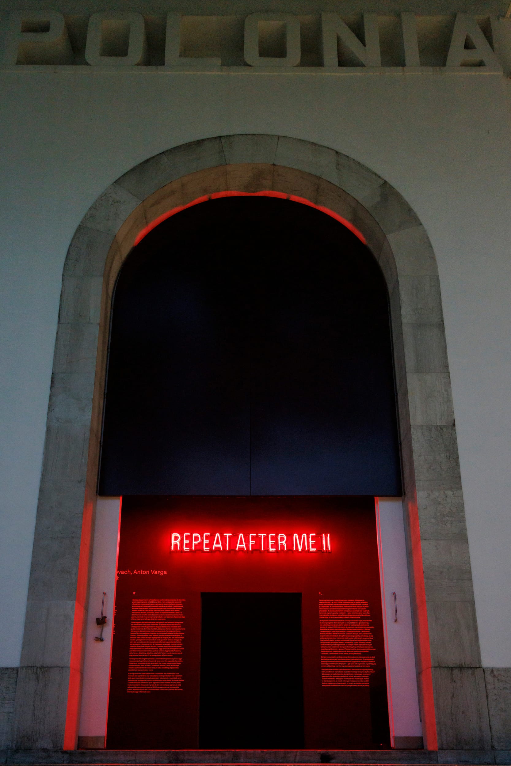 After a center-left coalition, headed by current prime minister Donald Tusk, triumphed in the October 2023 election, the new culture minister summarily jettisoned Czwartos. In a radical move, he was replaced by the Ukrainian collective Open Group (Yuriy Biley, Pavlo Kovach, Anton Varga).