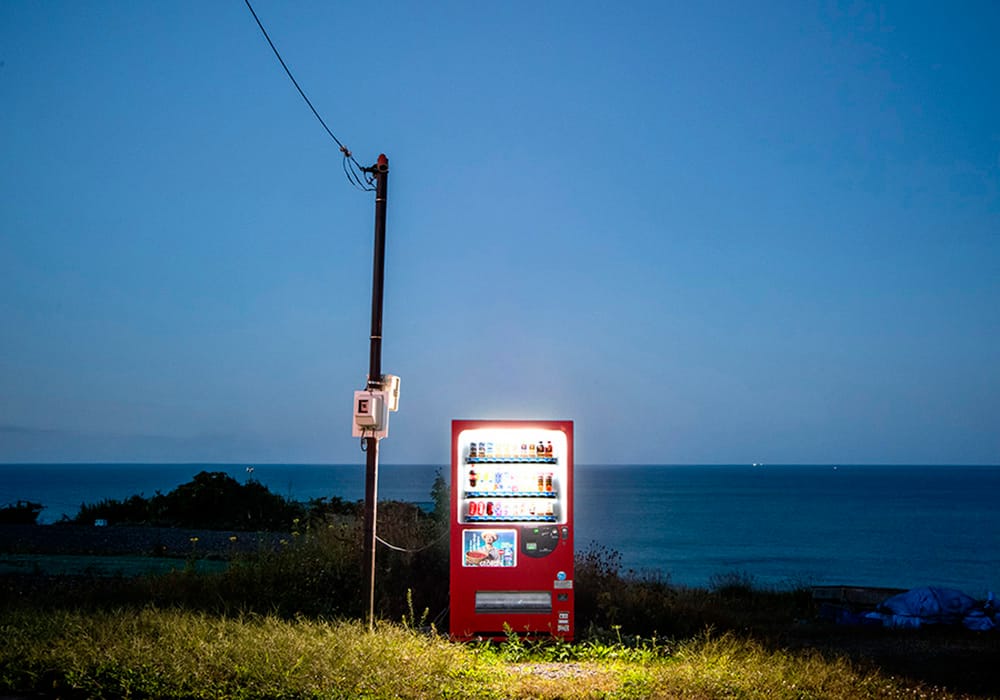 Unlike vending machines in many other countries, those in Japan sell everything from drinks to ramen to floral arrangements. As Ohashi’s work emphasizes, the gleaming boxes are familiar sights across Japan, at stores, in the woods, and even in the middle of a field — they are literally part of the nation’s landscape. The fact that they are often outdoors, where they largely remain clean and functional, also stands as testament to Japan’s reputation as an orderly and secure country.