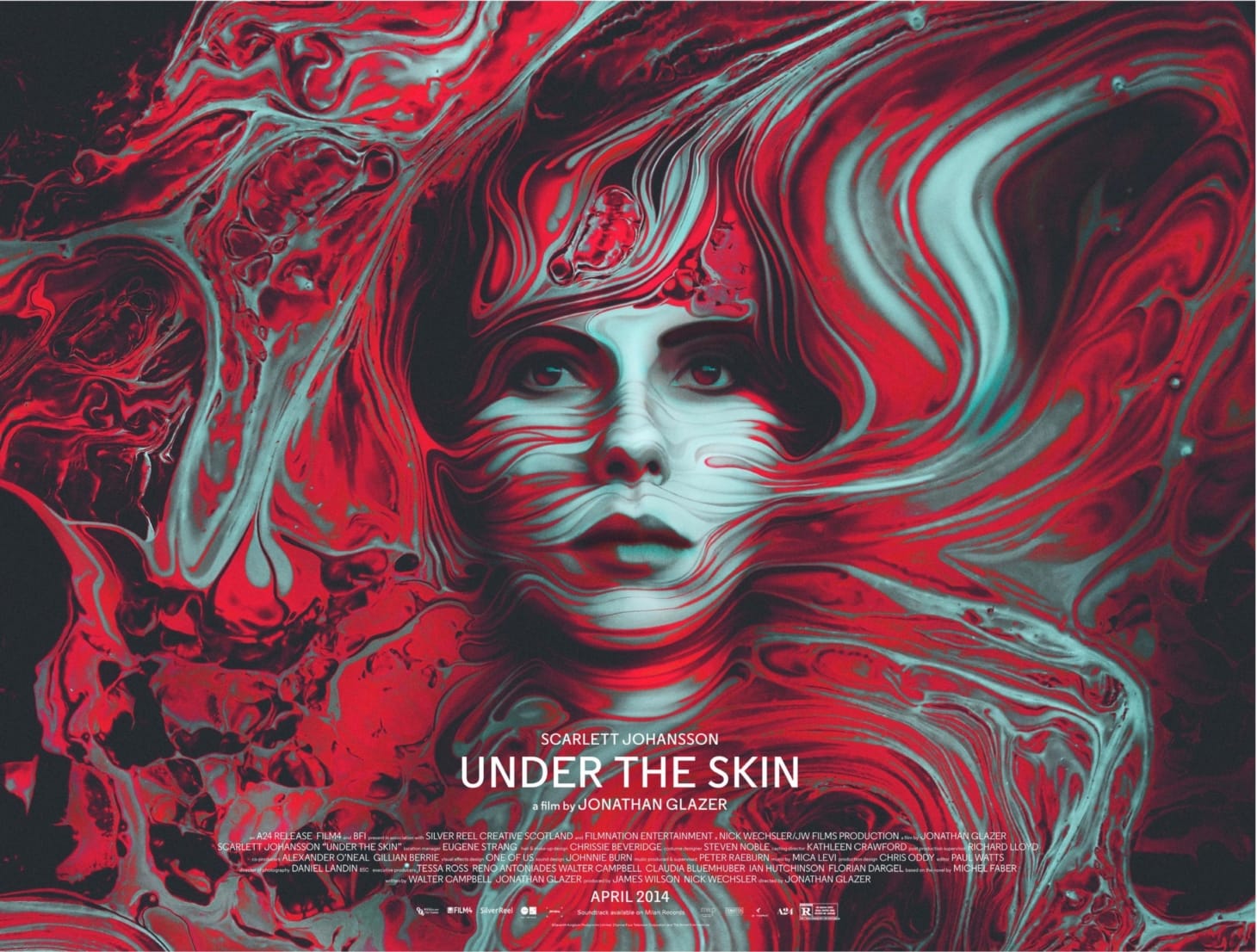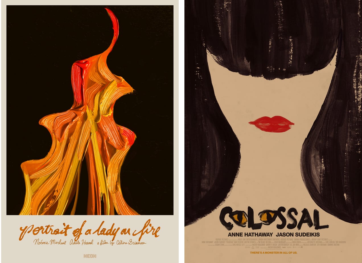 In her new book Akikomatic: The Work of Akiko Stehrenberger, co-edited by J.C. Gabel, which collects nearly 100 of her posters to date, Stehrenberger commented on usually being brought on to a project when “a studio wants a less conventional poster and more often than not, a secondary poster where they can take a bit more of a risk.” What sets Stehrenberger’s posters apart is her commitment to integrating illustration. She often uses a mix of traditional and digital painting to gain the desired final effect, evoking emotion in a way that doesn’t often translate in your average film poster. For Céline Sciamma’s period romance Portrait of a Lady on Fire, the oil painted flame at the center of the poster has a distinct, deeply sensual texture. What makes the poster even more engaging is its optical illusion, as the flame also contains the silhouettes of two women kissing, a gesture to the film’s plot. Stehrenberger regularly uses such illusions in her posters; see her work for Colossal, Red Riding, and Netflix’s Unbelievable.