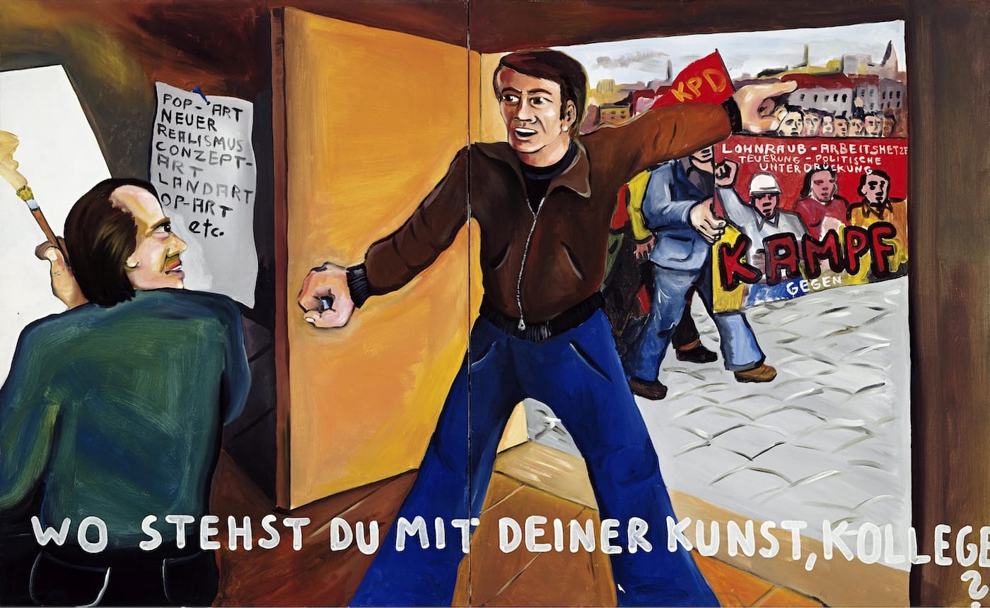 Expelled from the Düsseldorf art school, the Kunstakademie, for his political activities as a member of the Communist Party of Germany — a splinter group opposed to the German Communist Party, the Soviet regime, and, of course, the United States — in the 1970s Immendorff made political propaganda paintings.