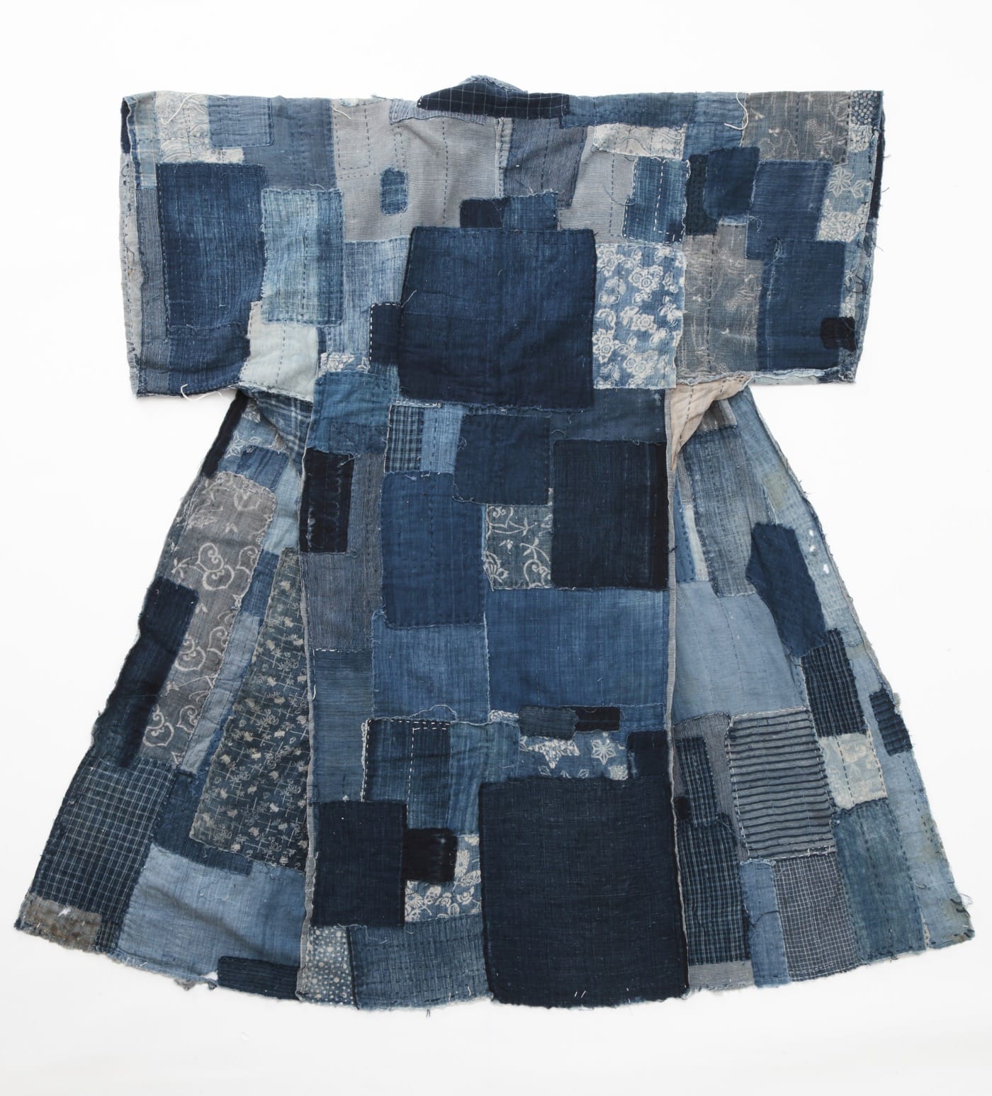 Groovy was the hot red cell dedicated to Verner Panton, an evocation of the entrance hall of the restaurant Varna in Aarhus, Denmark he designed in 1971. Creating this restaurant décor gave the Danish designer an opportunity to apply his approach to color on an immersive scale. Another cell contained a vast array of Tupperware plastic ware. This display was historically illustrative in terms of decade styles, showing the color tone preferences of different eras since the ‘50s to today. Time-based preferences were also demonstrated in a cell dedicated to Le Corbusier’s taste in bright color as related to his architecture, and in the display of the little known decorator Paule Marrot who brought muted cool colors and jazzy printed textiles to the Renault automobile company in the early 1960s. All of these dips into dated color were lovely, but I unequivocally loved the classical boro garment cell that held Japanese popular clothing from the collection of Stephen Szczepanek. Boro clothing is made of assembled pieces of fabric bits dyed with indigo sewn into a patchwork. That is why boro derives its name from the Japanese word boroboro meaning “rags” or “tatters.”
