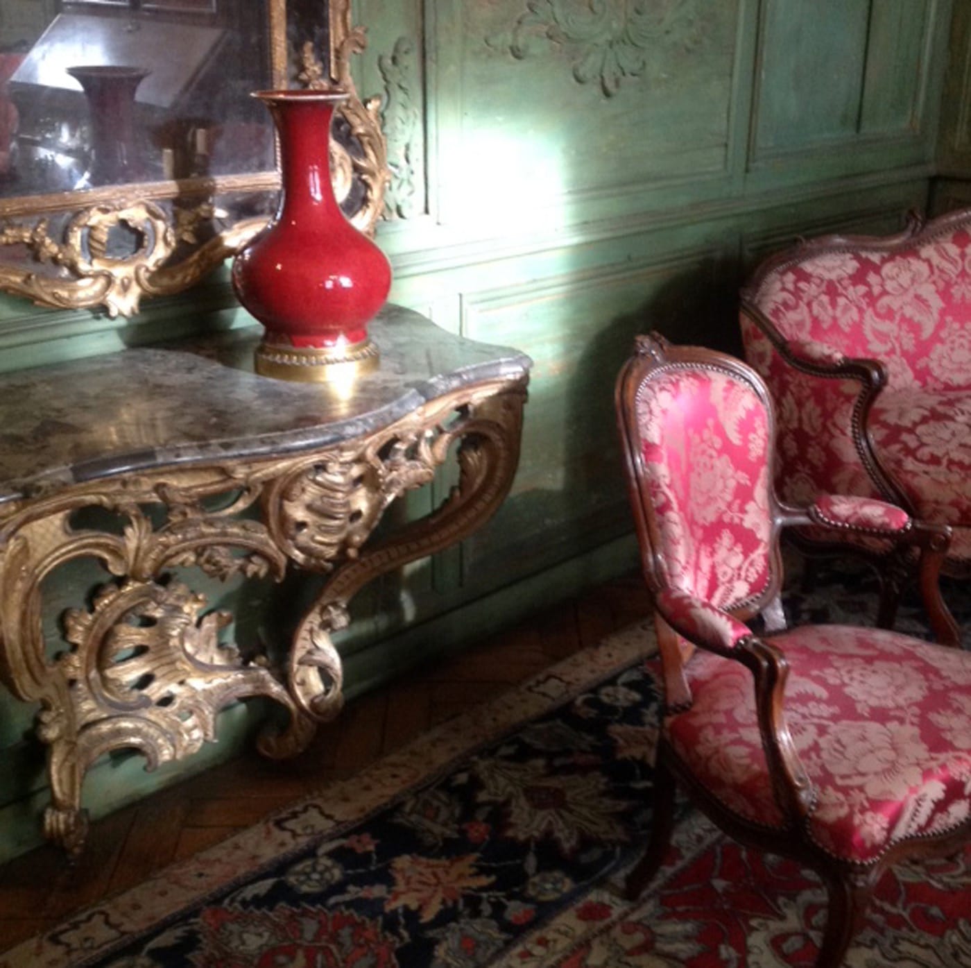 Things are more conventional in the Hôtel de Lalande part of the show, with a cobalt blue ceramic collection from Delft and Nevers, but no less beautiful. Extraordinarily striking for me was a single oxblood Chinese vase that was astoundingly sunlit within the greenish, 18th-century Rococo rocaille room setting of the Salon de Gascq. Other oxblood glazed ceramics by Ernest Chaplet, Adrien Dalpayrat and Auguste Delaherche were also on view from the collection of the Cité de la Céramique-Sèvres, a foretaste of the exhibition L’Expérience de la Couleur to be held in Sèvres in 2018.