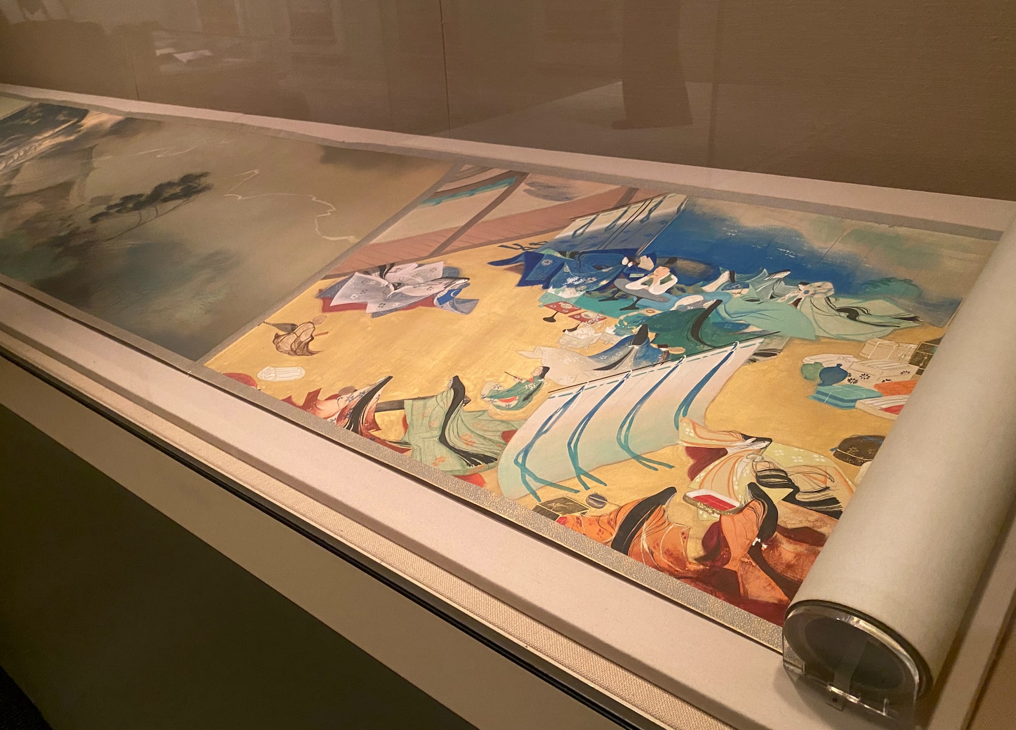 My favorite piece on view is Itō Ryūgai’s “Handscroll of Tyrannical Government” (1920), which references a Chinese idiom — a tyrannical government is more fierce than a tiger (苛政猛于虎). It comes from the story of Confucius meeting a woman who chose to live in the wilderness despite having lost her entire family to tigers. The scroll portrays life in the quiet mists, courtly life, and armed soldiers enforcing class by collecting rice from poor villagers. It’s perhaps as true in the early 20th century as it is today, and as it was in Confucius’s time some 2,500 years ago.