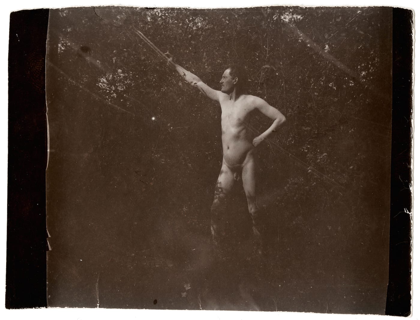 The work in Experimental Self is most interesting when a photographic subject interacts more personally and directly with the camera. “Self-Portrait ‘à la Marat,’ Beside a Bathtub at Dr. Jacobson’s Clinic” (1908-09) is not only a tongue-in-cheek nod to Jacques-Louis David’s 1793 painting “The Death of Marat,” but is also a slightly grotesque half-nude of the artist staring into the camera, an allusion to physical violence that feels like a genuine moment of emotional insecurity.