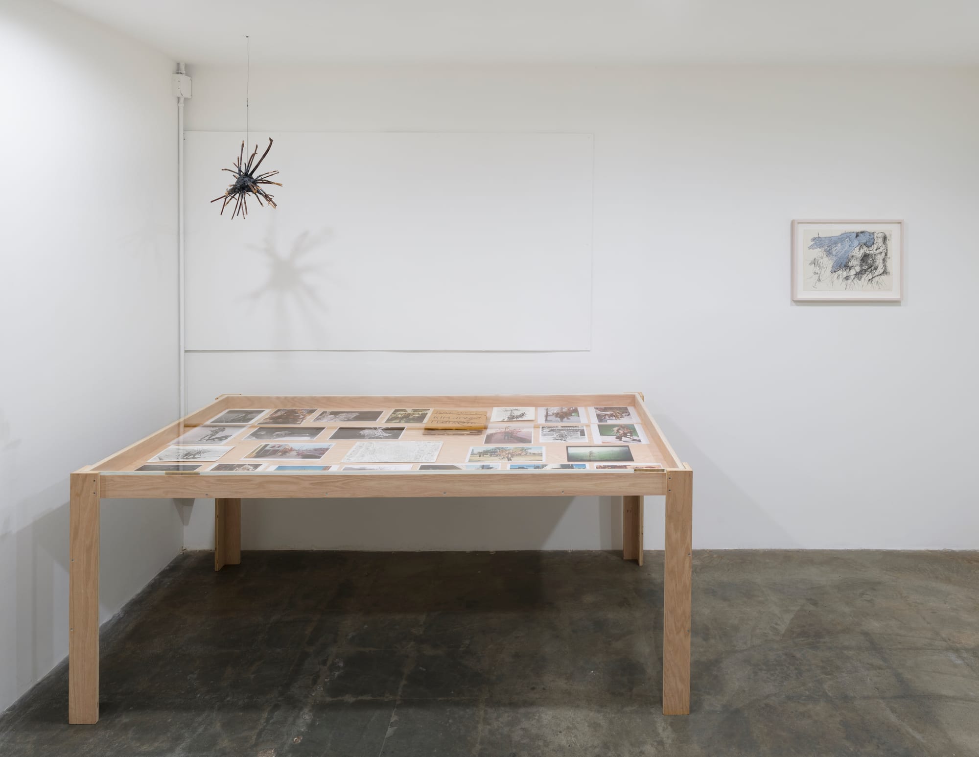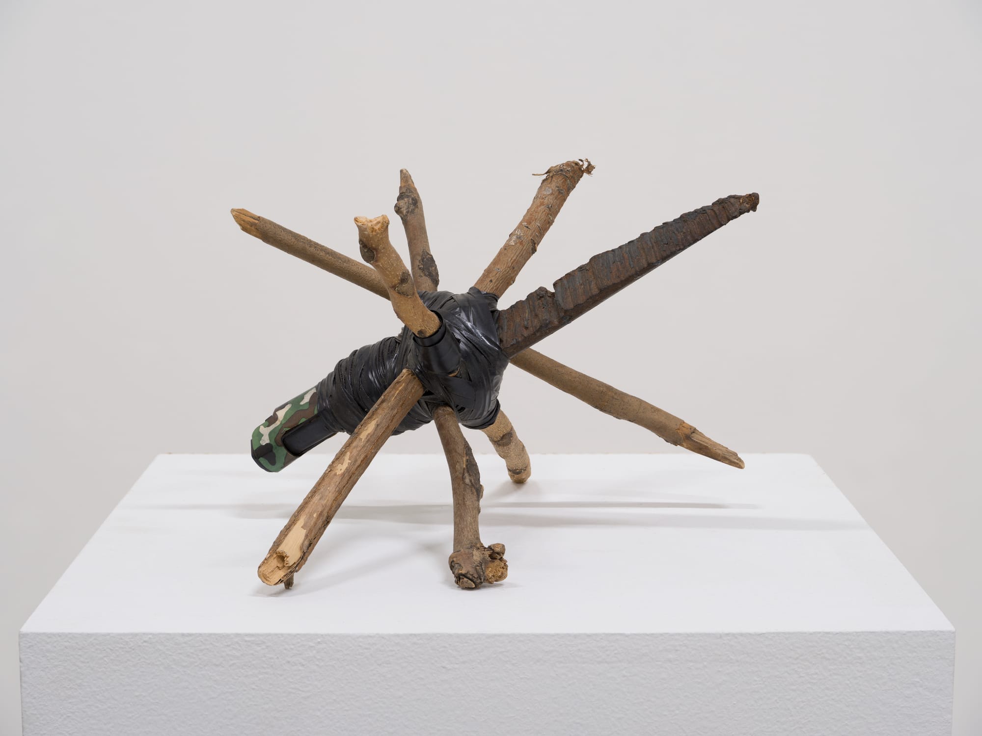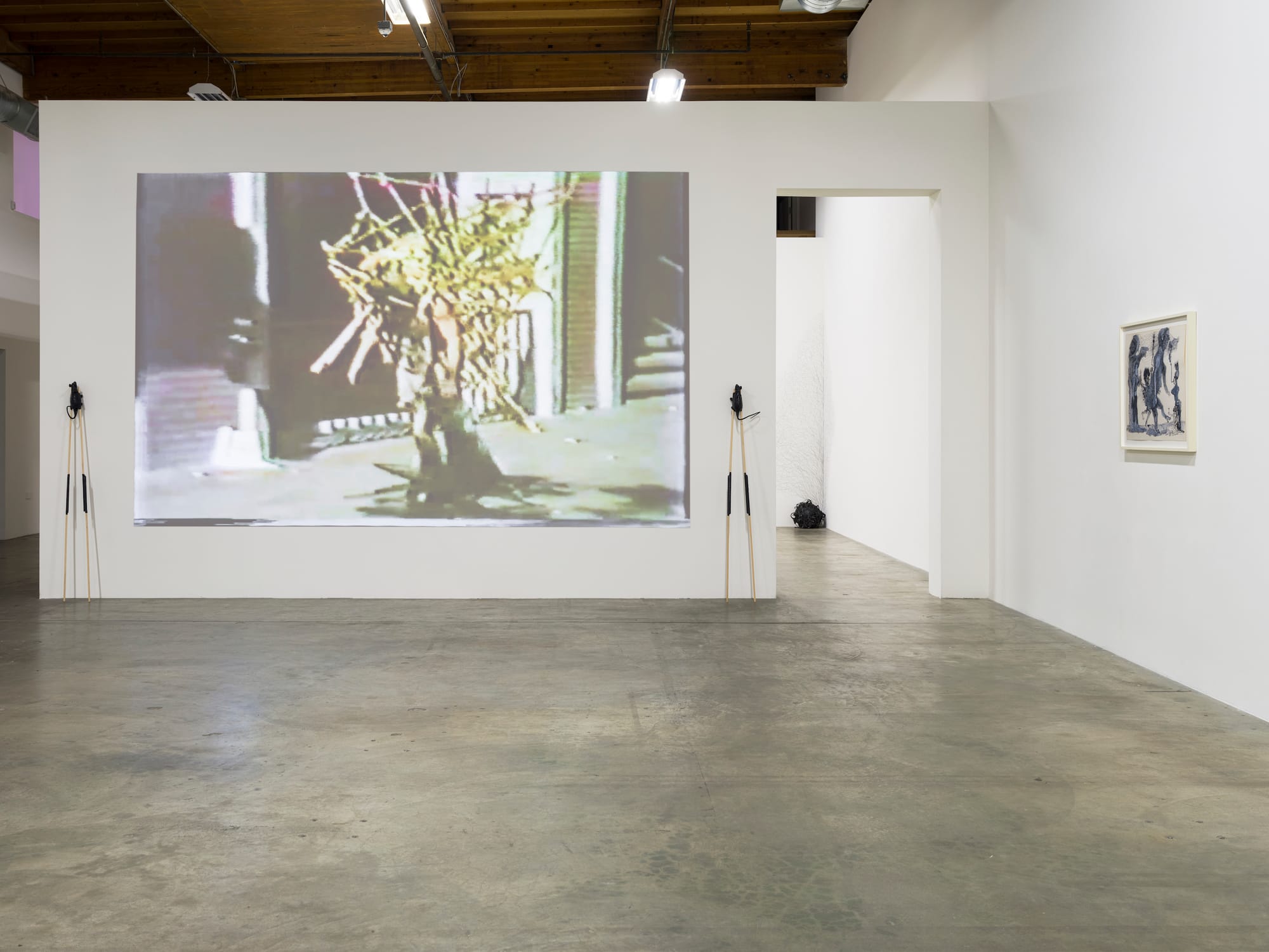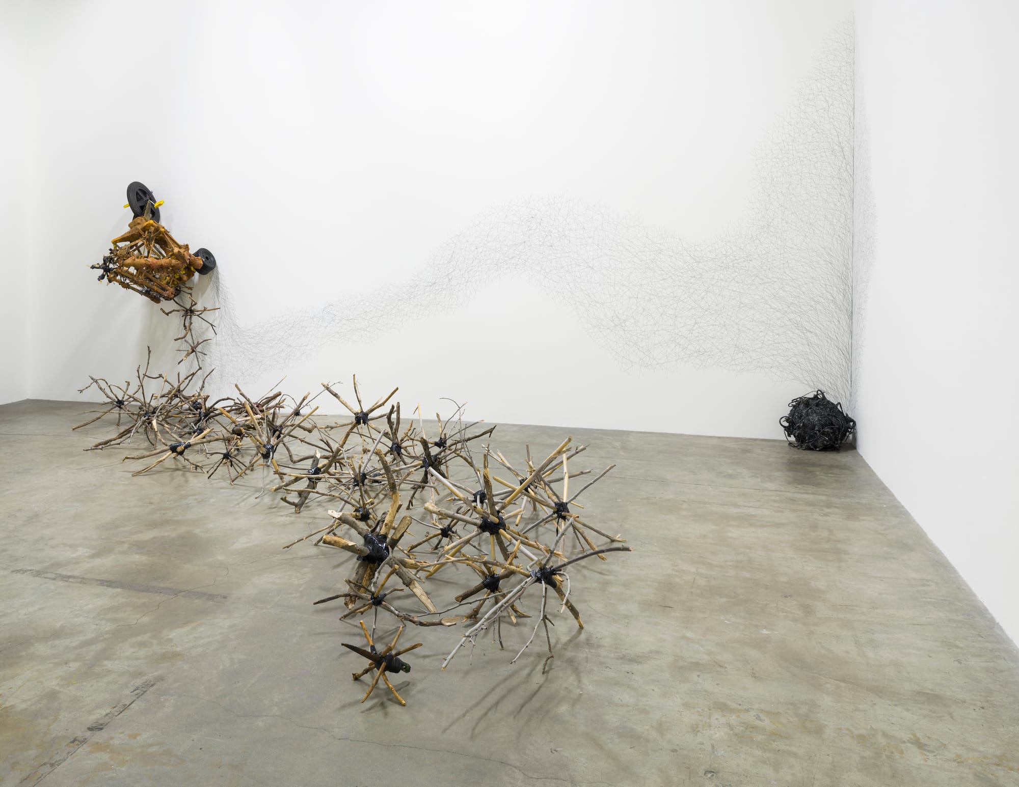 For Walking Home, his first exhibition at The Box, Jones returns to his old SoCal stomping ground with new and reworked drawings, along with sculptures, mostly composed of bound sticks that suggest barbed wire, maces, or other spiked weapons, and a video of a San Francisco Mudman performance from 1979. Jones connected with me by phone to discuss his influences, as well as “Rat Piece,” the origins of Mudman, and sexy frogs. This conversation has been edited for length and clarity.