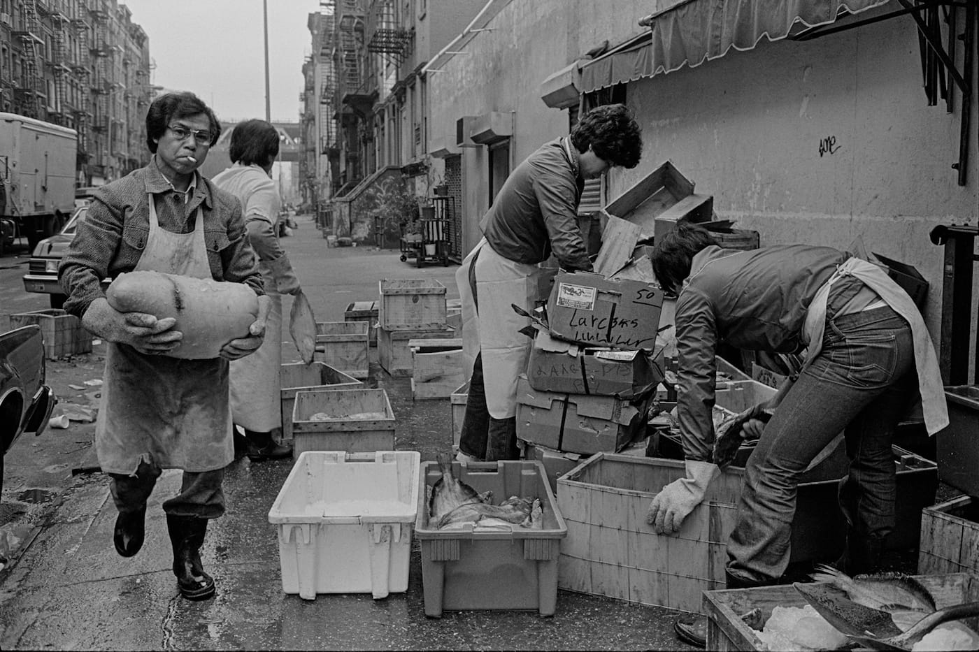 Glick is now embarking on a project with MOCA’s co-founder Jack Tchen to reconnect with the subjects of his photographs. After the series was exhibited in numerous places between 1981 and ’86 — the New York Public Library, Queens Museum, Henry Street Settlement House, and Chicago’s Beacon Street Gallery, among others — Glick revisited it in 2010 to digitize the negatives and make large prints. Since sharing it online, he’s managed to identify over a dozen individuals in the the pictures, as people have recognized friends or family members and reached out: one woman noticed the face of her late grandfather in a group of men celebrating Chinese New Year on Bayard Street; the son of the owner of a seafood store saw his great uncle smoking a cigarette and carrying a bag of scallops; a 35-year-old saw himself as a toddler, napping in his grandfather’s lap while the man read the newspaper on a stoop.
