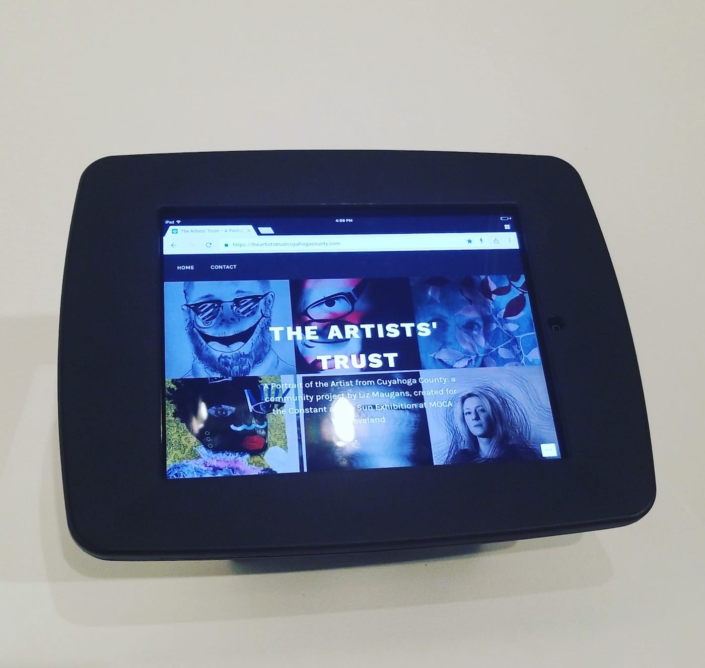 Another Cleveland artist, Liz Maugans, is showing her “Artist Trust Project,” a wall of 300 self-portraits submitted by a diverse sample of Cuyahoga County artists. By drawing focus on the number and range of local artists, Maugans explodes monolithic notions of who “belongs” to the world of fine arts. Through this project, she hopes to foster a politicized artists’ group, or, as Maugans herself says, facilitate “open communication between artists and the [art] community.”