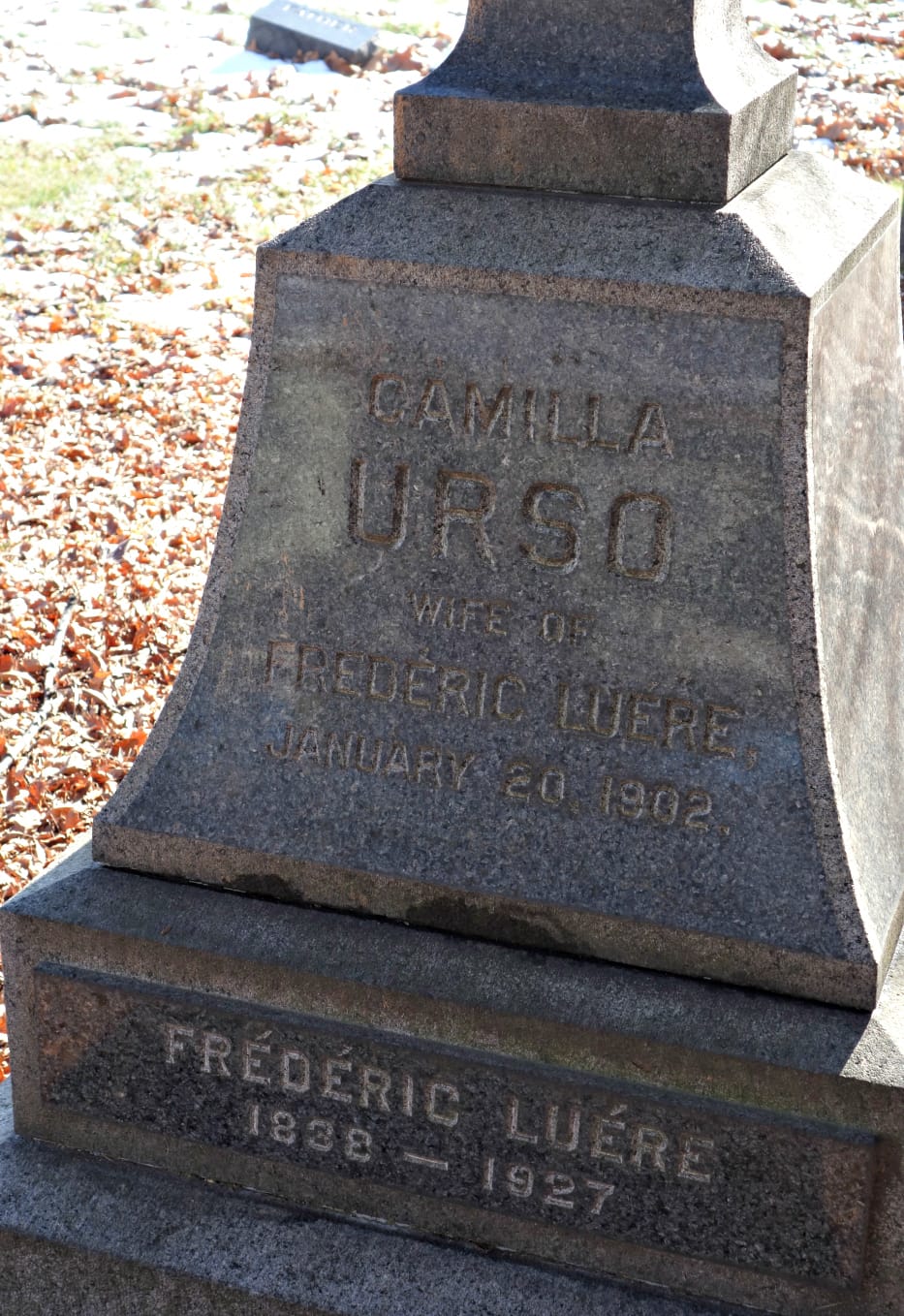 Urso died in 1902 in New York City from appendicitis. Yet go to Green-Wood Cemetery in Brooklyn where she’s buried, and you won’t find her grave on the map. In fact, she wasn’t even on Find a Grave, that thorough online compendium of burials, when I set out to track down her memorial earlier this year (although I made her an entry after my visit). Instead, I had to search for her husband, Frédéric Luére, who was buried alongside after his death in 1927. There below the granite cross positioned among low stones in an eastern corner of the cemetery, she’s simply described as the “wife of” Luére, with no hint of her incredible life.
