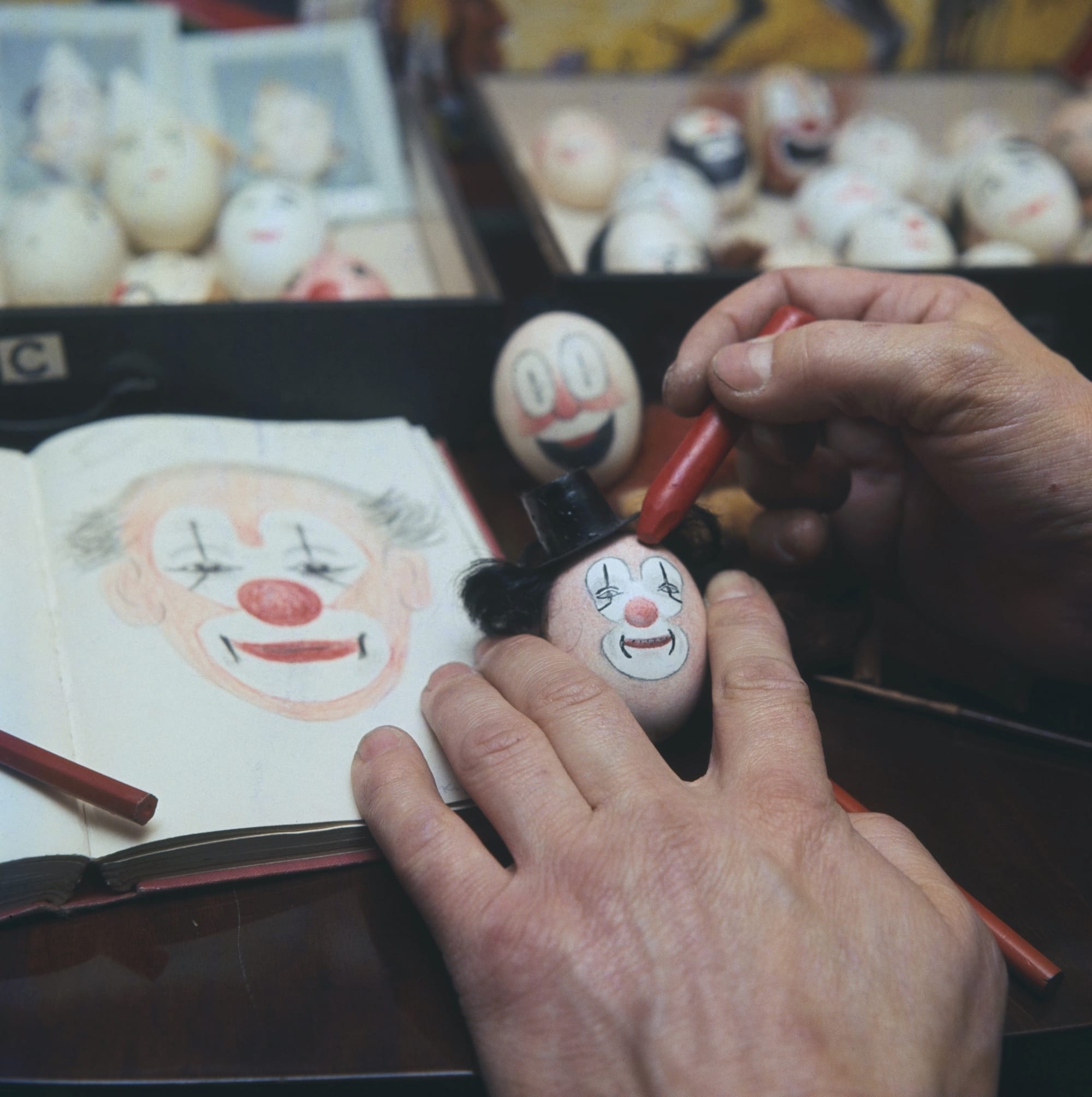 Known as the Clown Egg Register, the bizarre record-keeping system was first developed by Stan Bult, a North London circus enthusiast and founding member of the United Kingdom-based network Clowns International (formerly known as the International Circus Clowns Club.) Until his death in 1966, Bult spent many years following circuses around the UK to meticulously paint the faces of clowns onto at least 200 chicken eggs that had been hollowed out using a blowing technique to remove their eggy contents. After Bult's passing, his clown egg collection continued to be displayed; unfortunately, during one of this exhibitions, many of Bult's clown eggs were damaged beyond repair. When Bult's clown egg practice was revived in 1984 by Clown Bluey, dozens of Bult's eggs were recreated based on photographs.